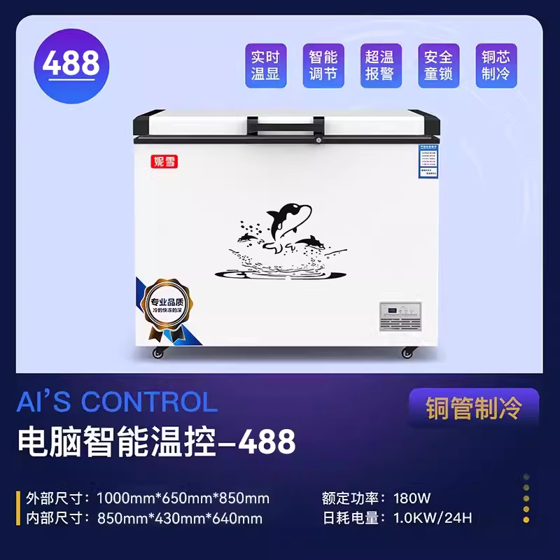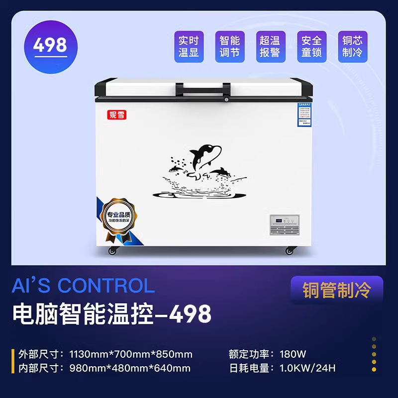 冰柜正面的海豚仅为展示用,实际发货无海豚图案,请知悉。