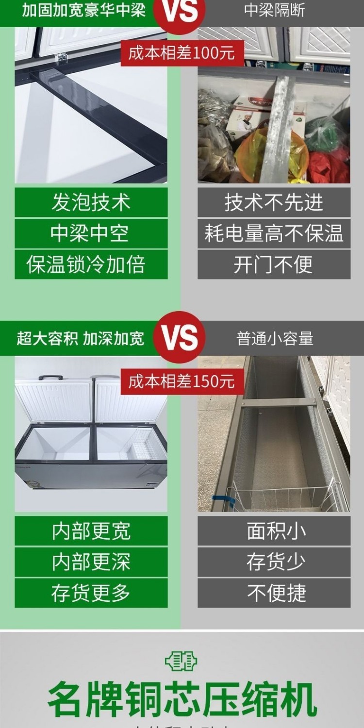 Nixue 가정용 대형 냉동고 상업용 냉동고 에너지 절약 수평 단일 온도 두 배 온도 냉장고 신선한 보관 캐비닛