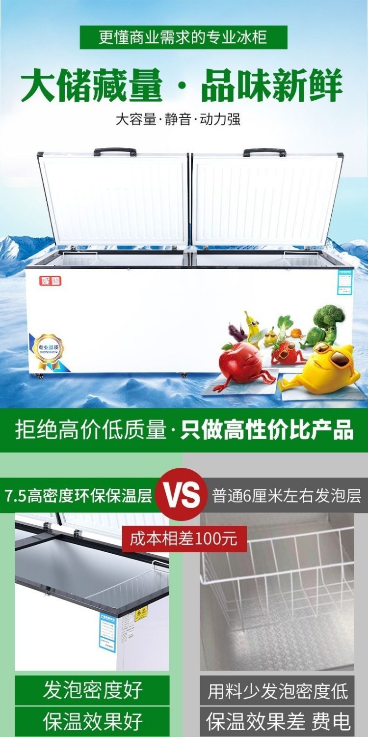 Nixue 가정용 대형 냉동고 상업용 냉동고 에너지 절약 수평 단일 온도 두 배 온도 냉장고 신선한 보관 캐비닛스토어 가기
