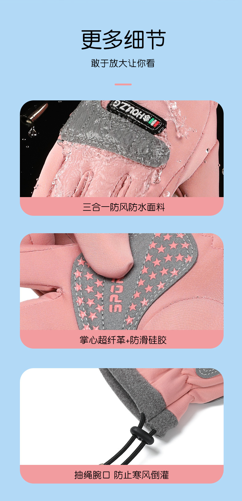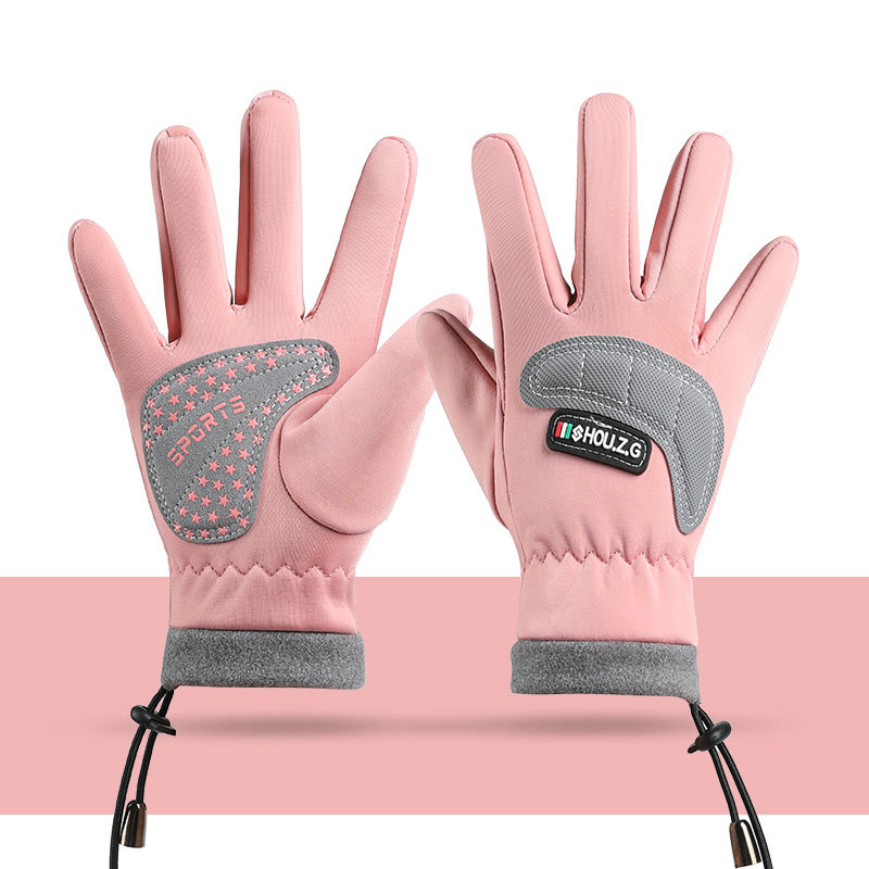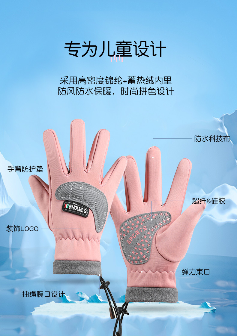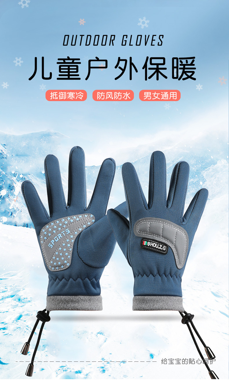 따뜻한 장갑 소년 소녀 Drawstring 스타일 두꺼운 겨울 방수 야외 등산 미끄럼 방지 사이클링 어린이 장갑