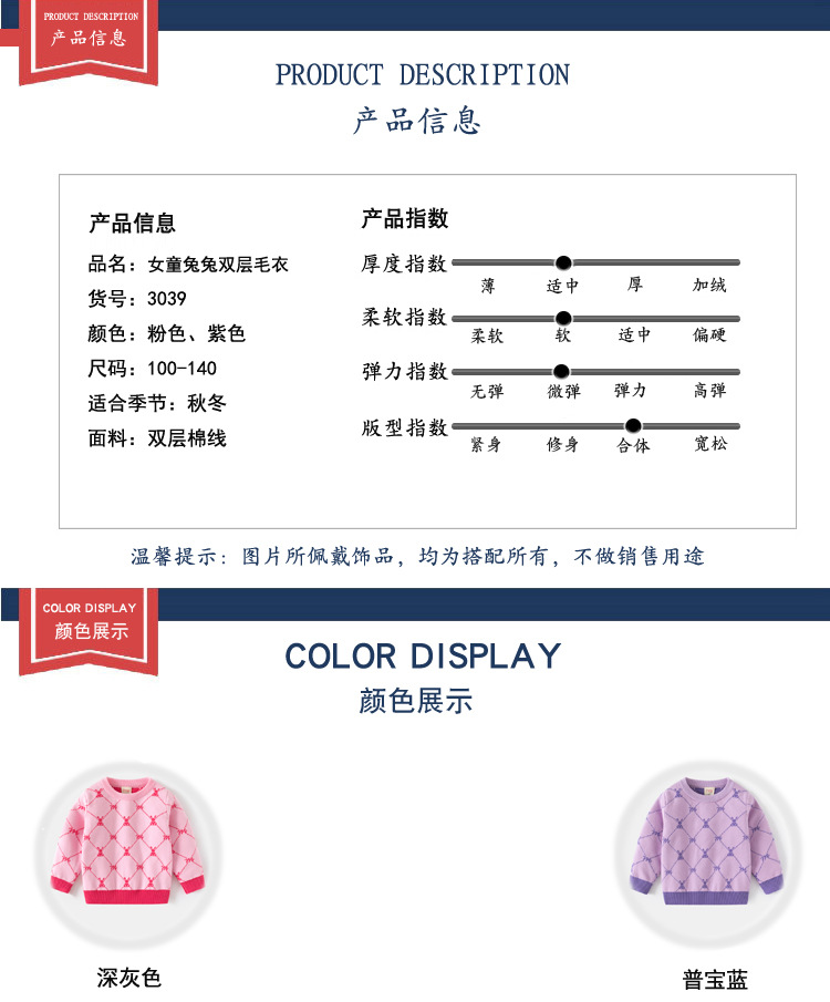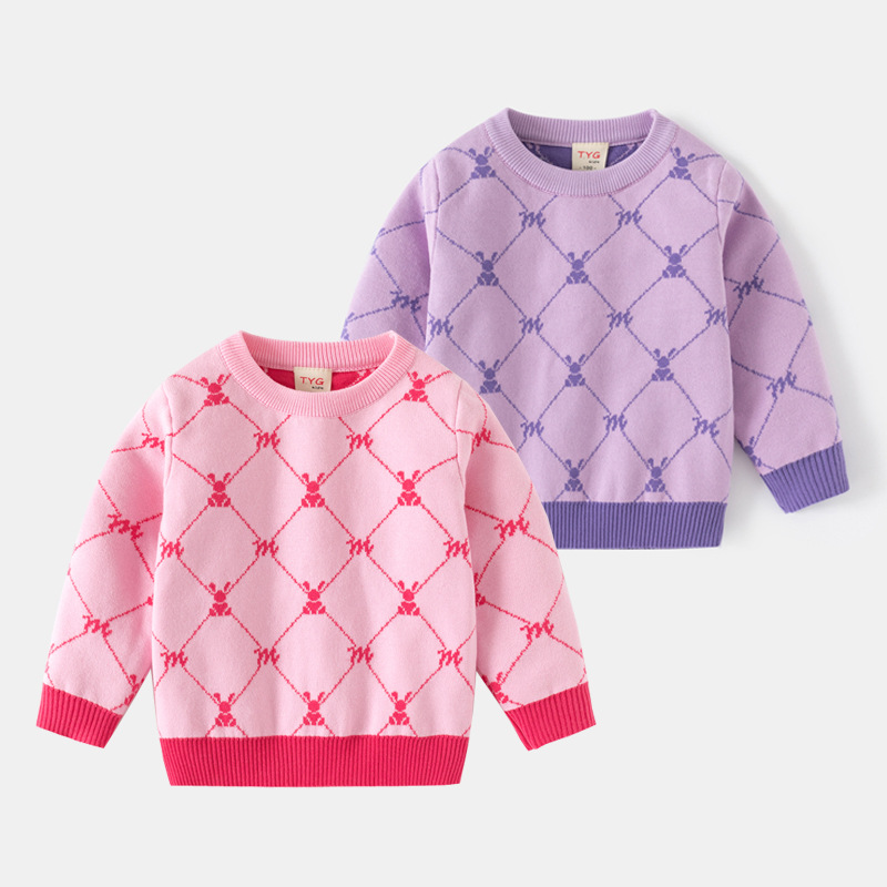 공장 직접 공급 선택 크기 상품 어린이 의류 소녀 귀여운 재미있는 토끼 토끼 자카드 바닥 스웨터 아기 다목적 스웨터 조수스토어 가기