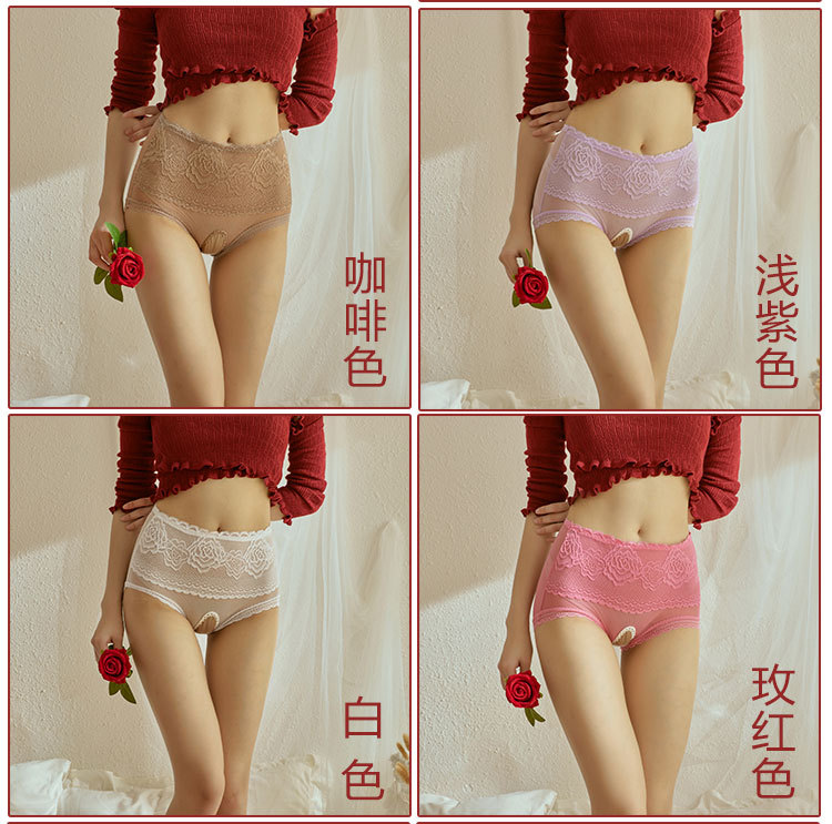 새로운 레이스 오픈 크로 치 팬티 여성 높은 허리 섹시한 여성의 추적없는 알몸 센스 반바지 코튼 크로치 배꼽 엉덩이 브리프