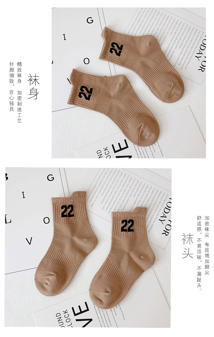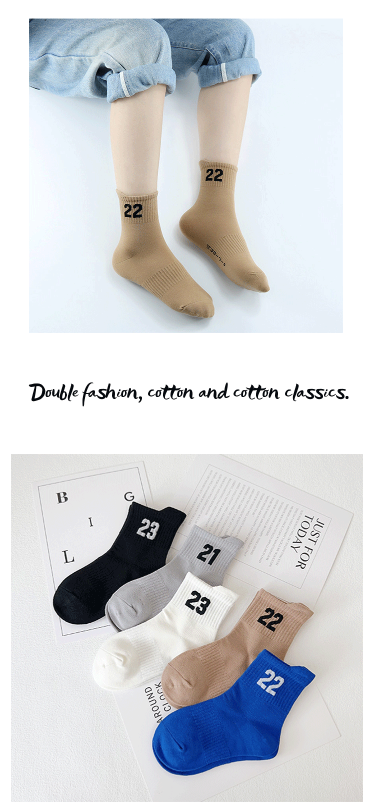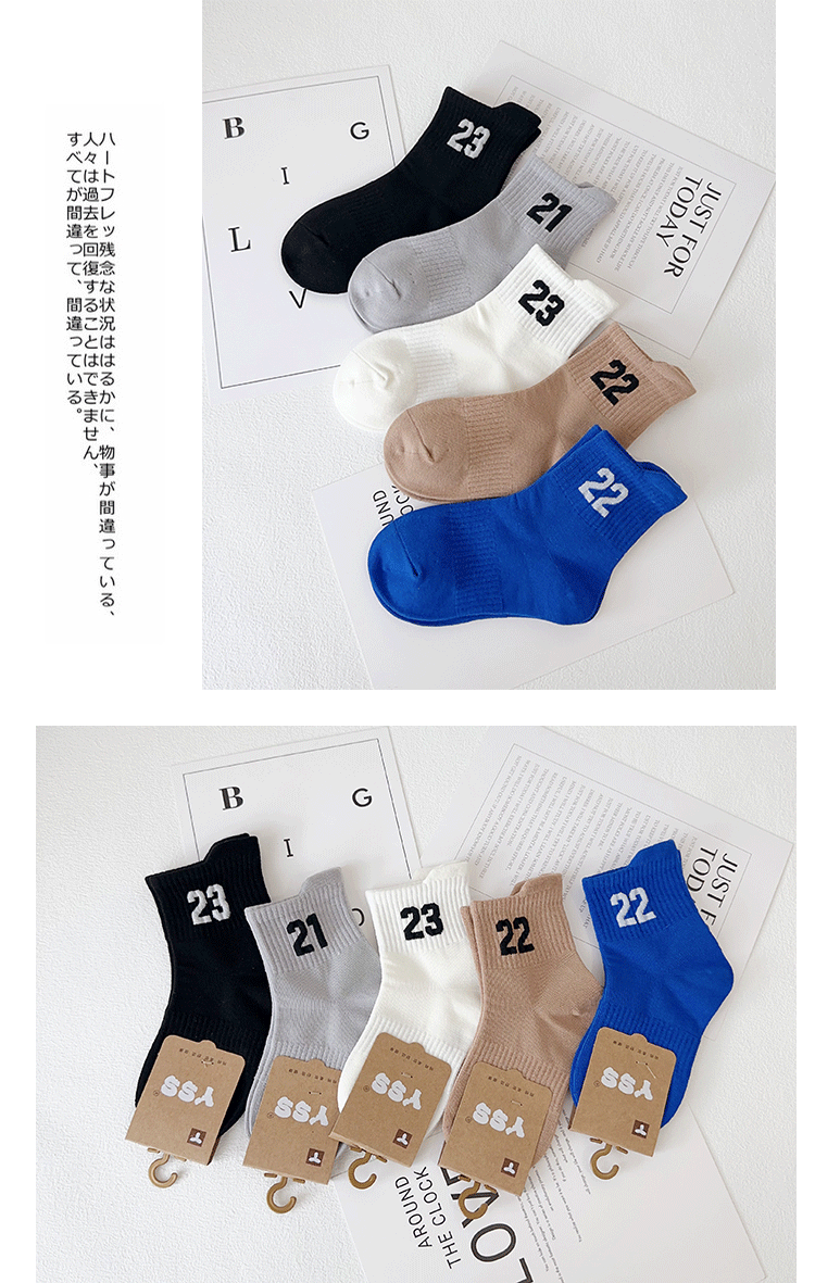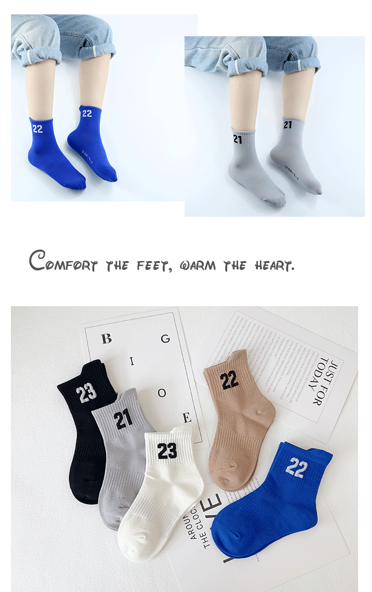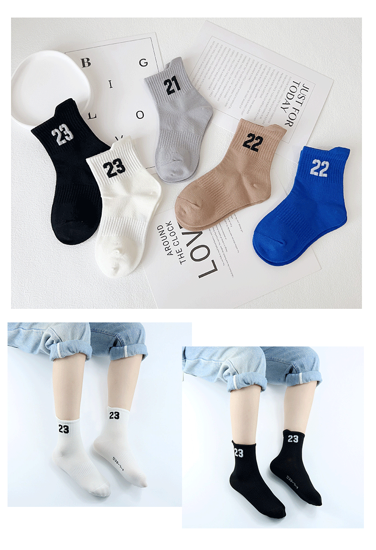 Yi Pair 어린이 양말 가을과 겨울 새로운 한국식 디지털 23 중장 양말 빗 코튼 보이즈 티 스포츠 양말