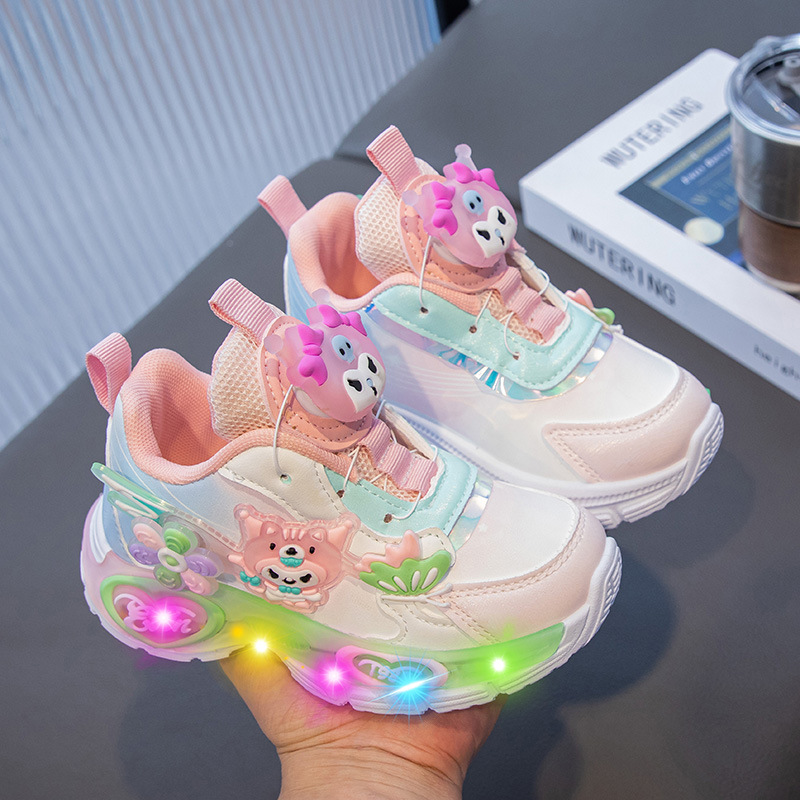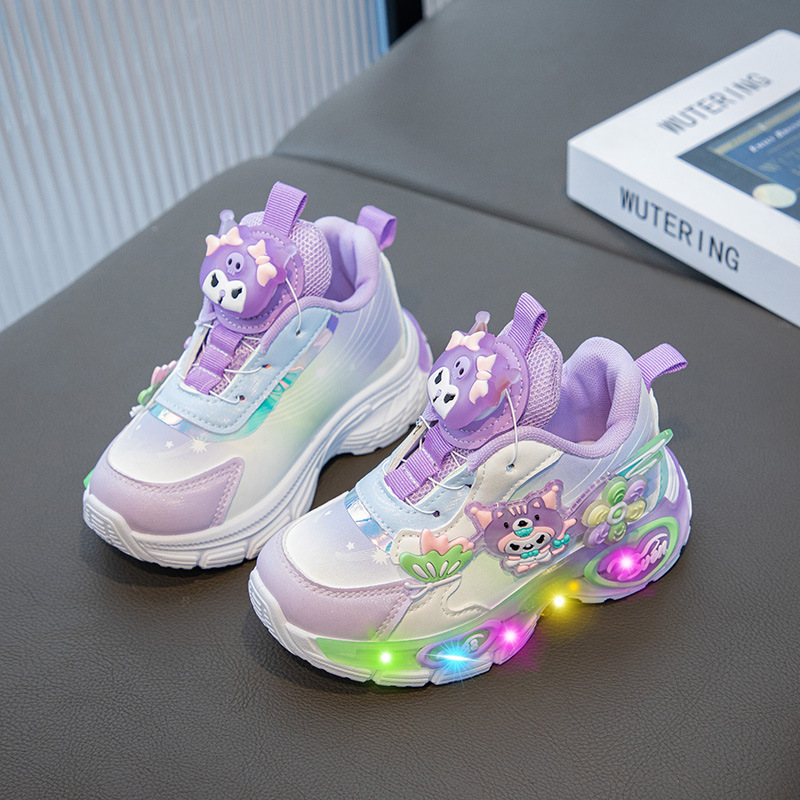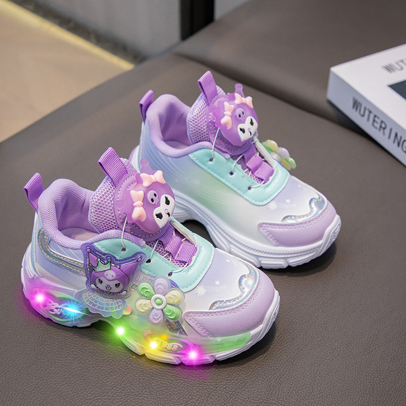 소녀 Culomi 2024 가을 새로운 Sequin 더블 넷 회전 버튼 운동화 어린이 통기성 조명 토레 신발