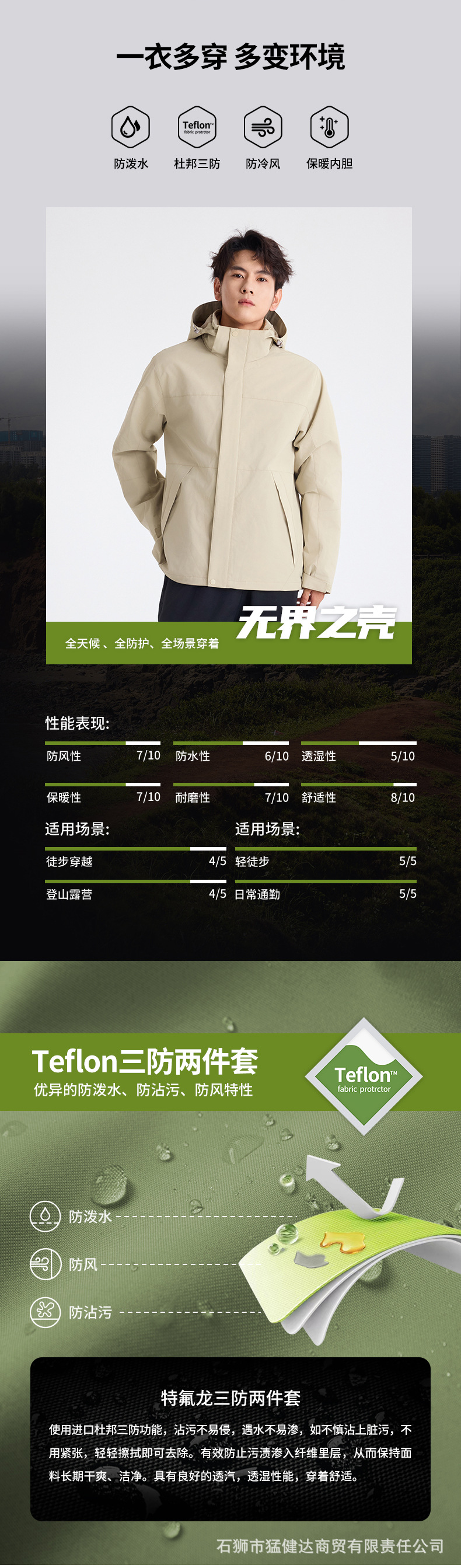 25 듀폰 4중 방수 재킷 여성용 3-in-1 방수 탈착식 안감 야외 공용산 캠핑 커플 재킷스토어 가기