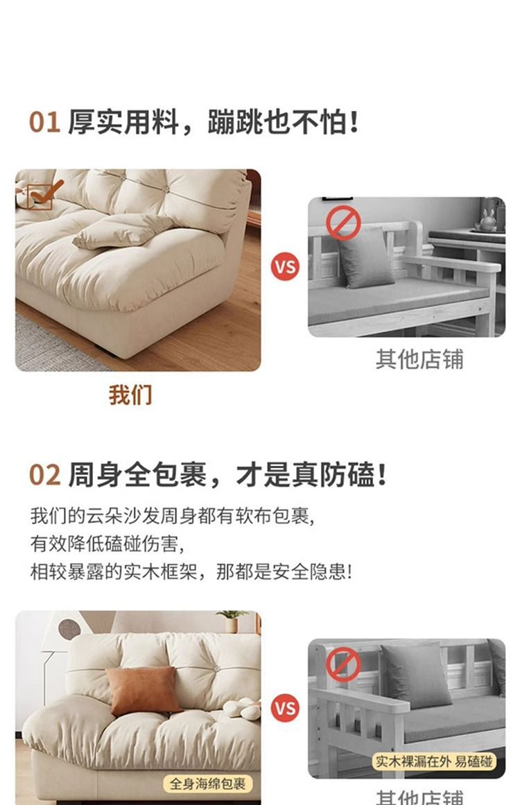 새로운 크림 클라우드 패브릭 소파 캐주얼 라이트 럭셔리 작은 아파트 홈 게으른 소파 아파트 임대 룸 소파스토어 가기