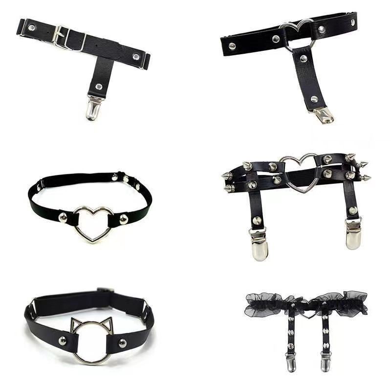 유럽과 미국의 국경 간 가죽 사랑 쇄골 목걸이 펑크 스트리트 샷 베어 다리 링 SM 속박 체인 넥 링스토어 가기
