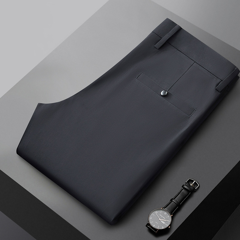 2024 여름 아이스 실크 얇은 캐주얼 바지 남성용 스트레이트 배럴 슬림 핏 드랩 라이트 비즈니스 통근 팬츠 오래 관리하기 쉽습니다.