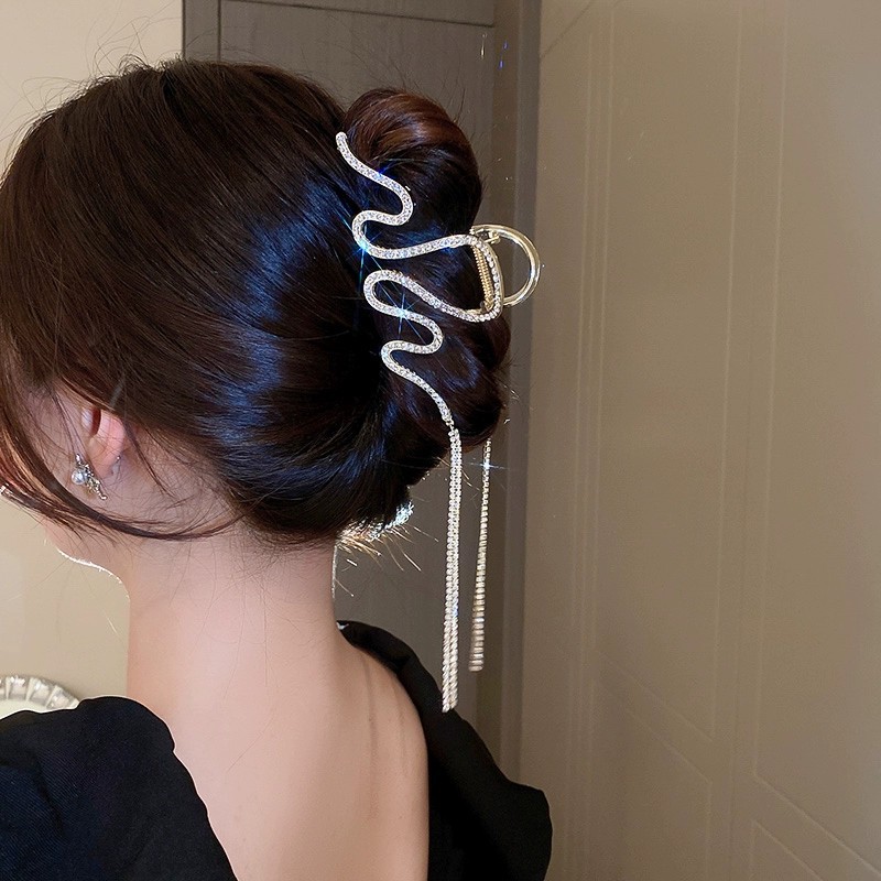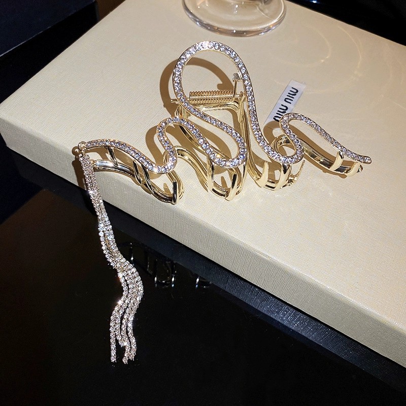 라이트 럭셔리 라인스톤 클립 대형 스네이크 클립 여성용 하이 엔드 술 체인 헤어핀 헤드 상어 클립 헤드웨어