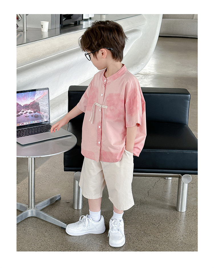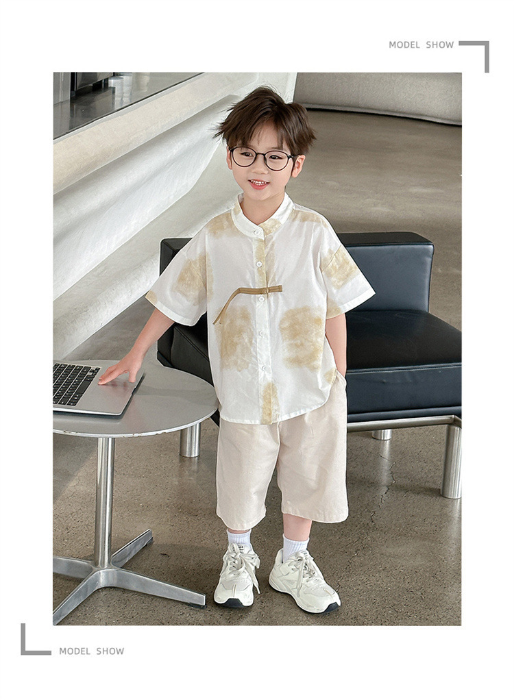 아동복 소년 여름 옷 새로운 중국 스타일 정장 2025 새로운 잘 생긴 소년 Baoguo 스타일 반팔 옷 유행스토어 가기