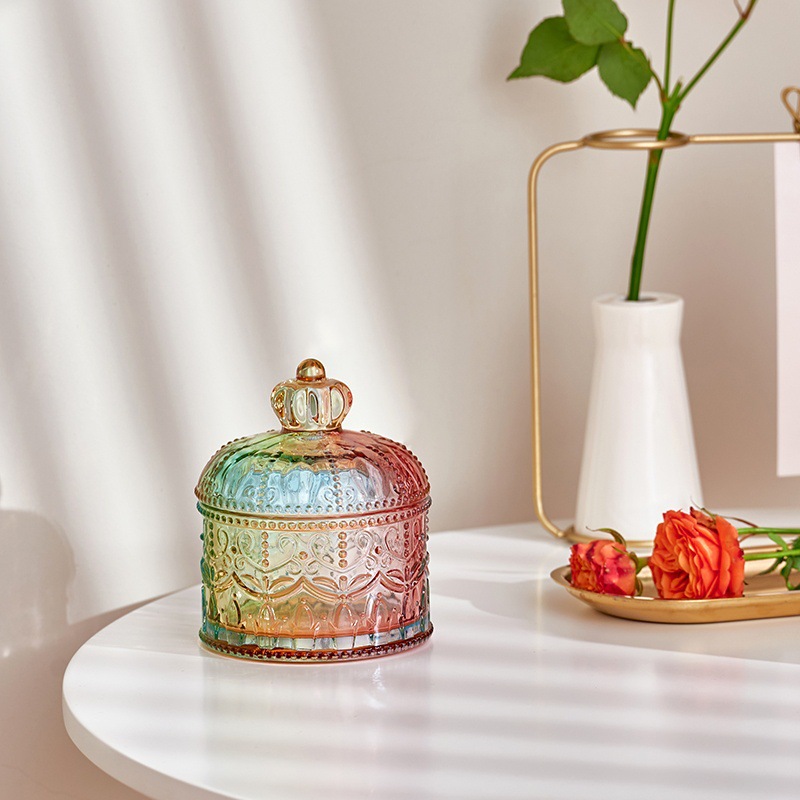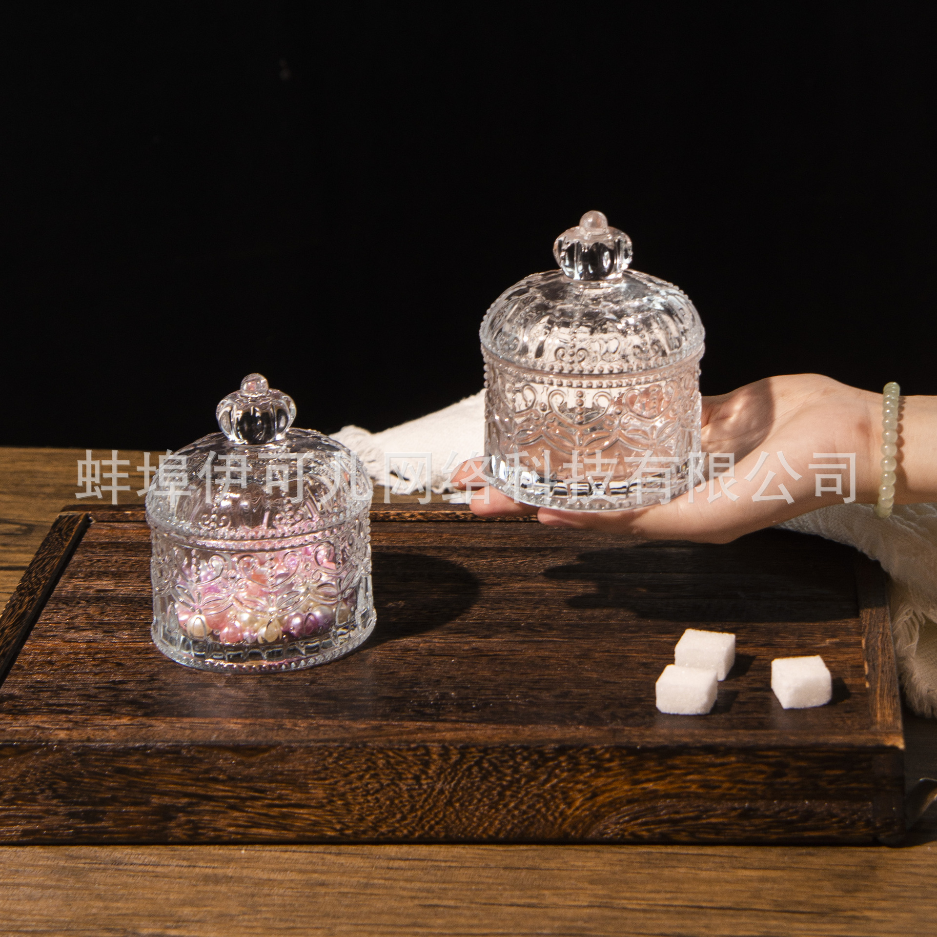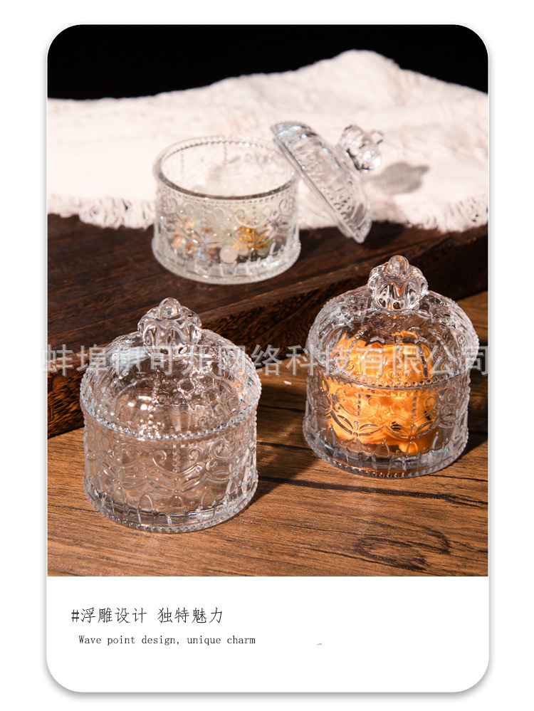 뚜껑이 있는 유리 방진 캔들컵, 테이블 장식품, 간식/사탕 용기, 차, 팔찌, 목걸이, 보석, 귀걸이 보관함