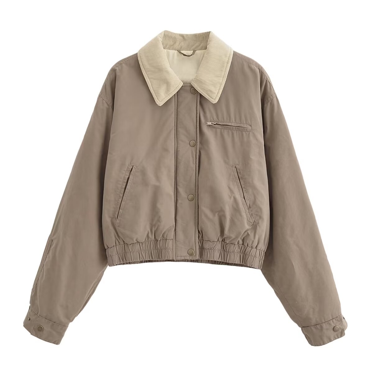 UC & ZA 국경 유럽 및 미국 여성의 2024 가을/겨울 새로운 명암 칼라 캐주얼 재킷 코튼 재킷 4341870스토어 가기