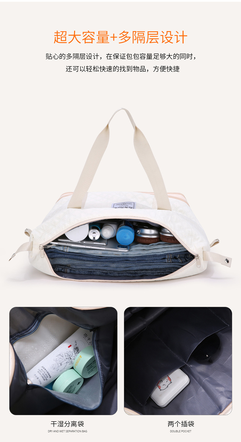 새로운 Rhomboid 여행 가방 저장 가방 생산 유니버설 휠 건조하고 젖은 분리 확장 수하물 가방 대용량 피트니스 가방스토어 가기