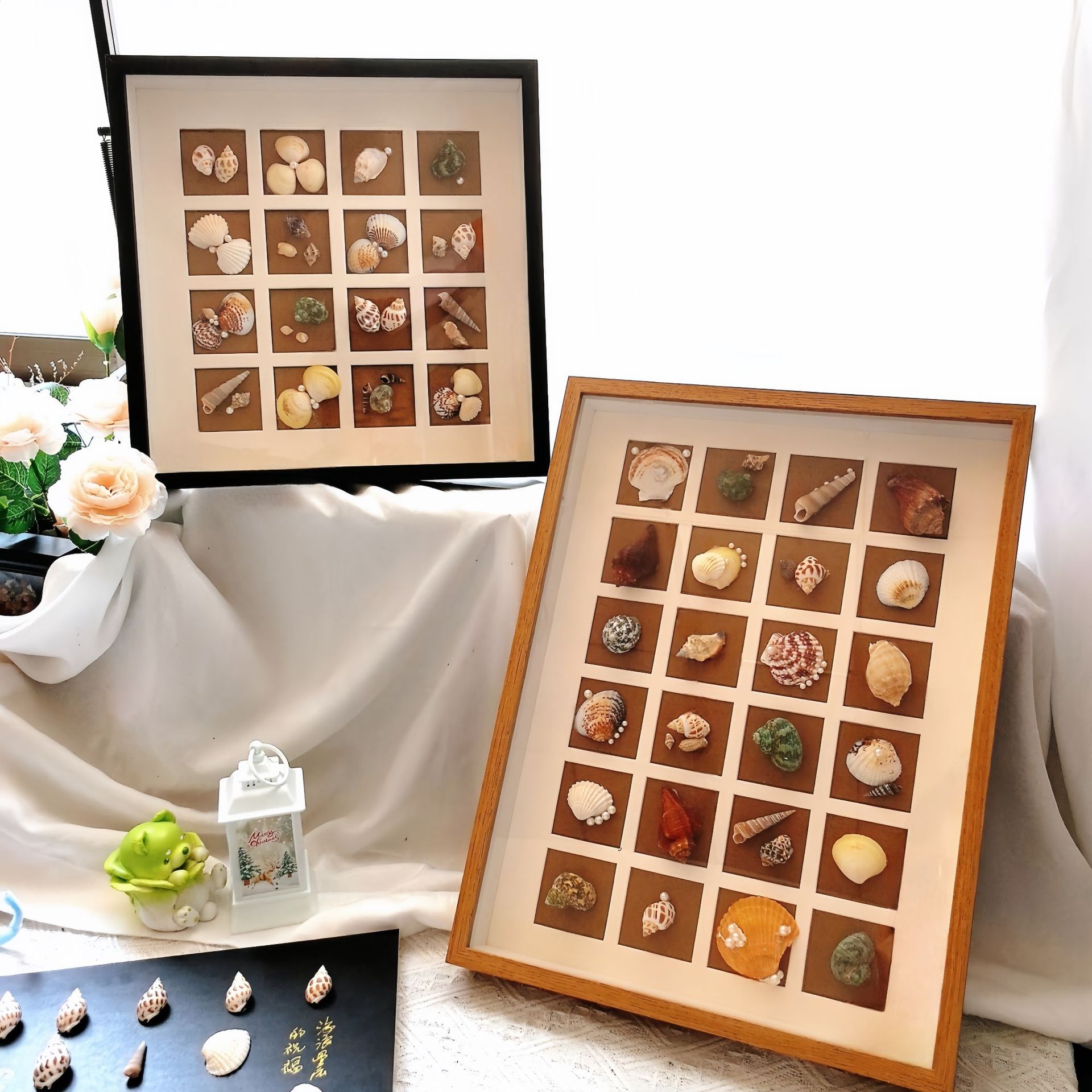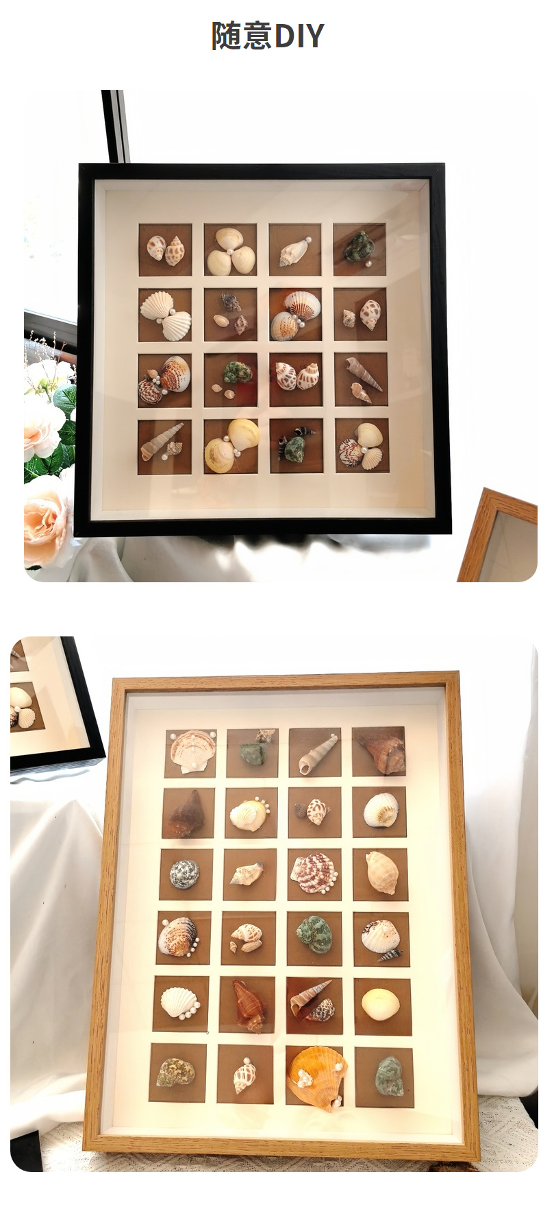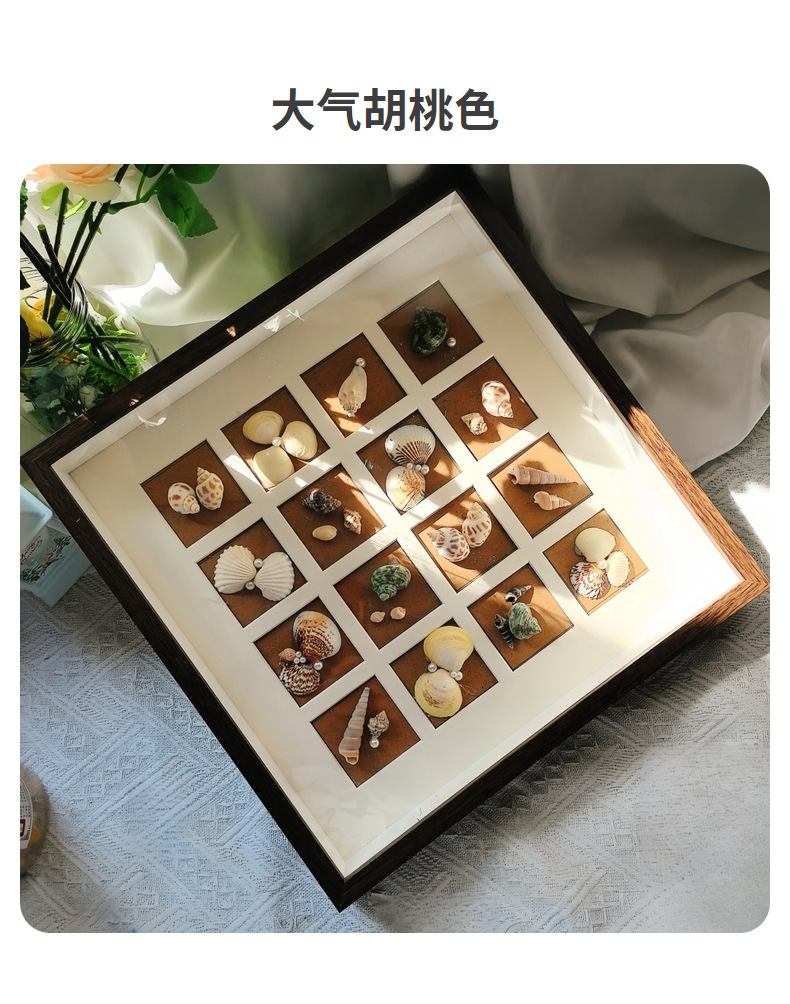 植物手作10宫格相框摆台贝壳手工DIY立体木质卡纸画框摆件厂家批