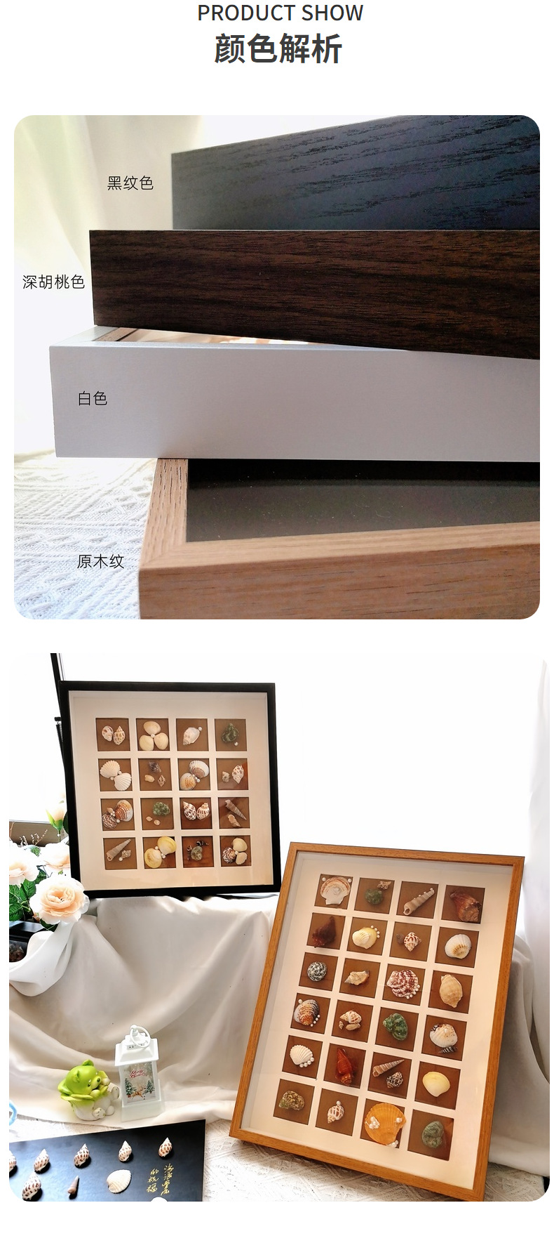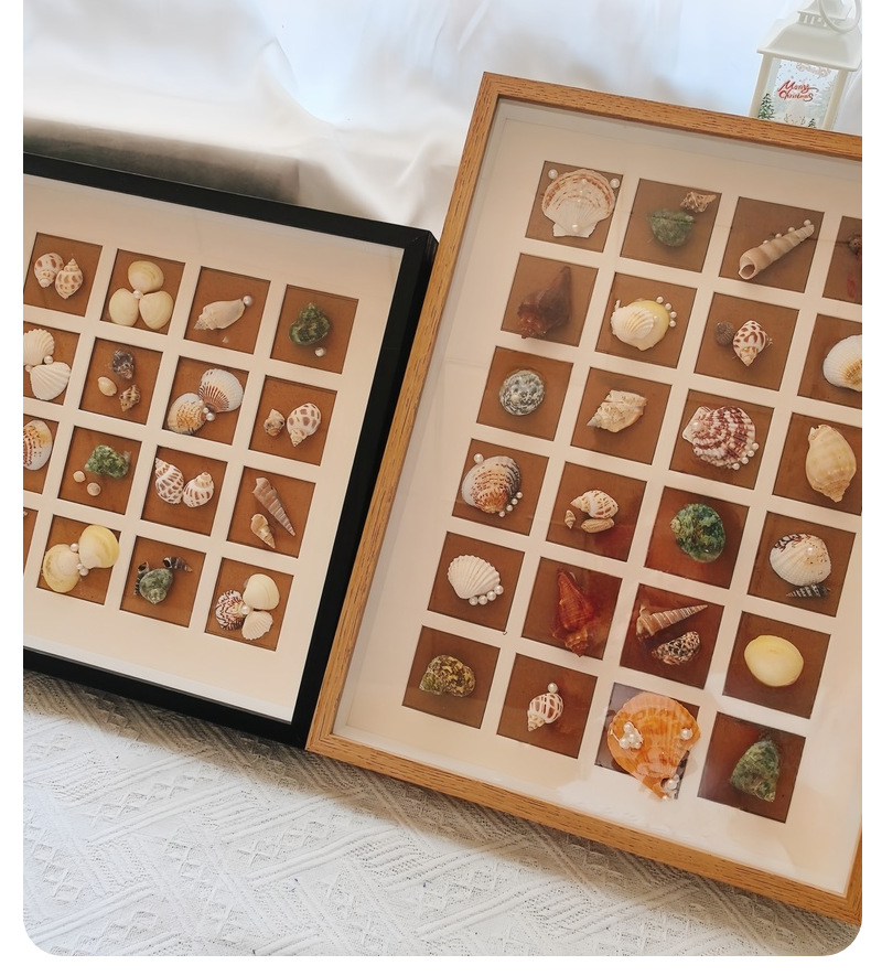 北欧木质相框手工DIY10宫格6孔贝壳昆虫植物果实标本中空摆台画框