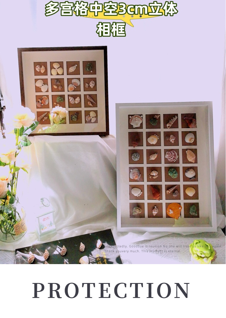 中空3cm立体北欧相框手工diy装裱植物干花贝壳正方形四九宫格画框