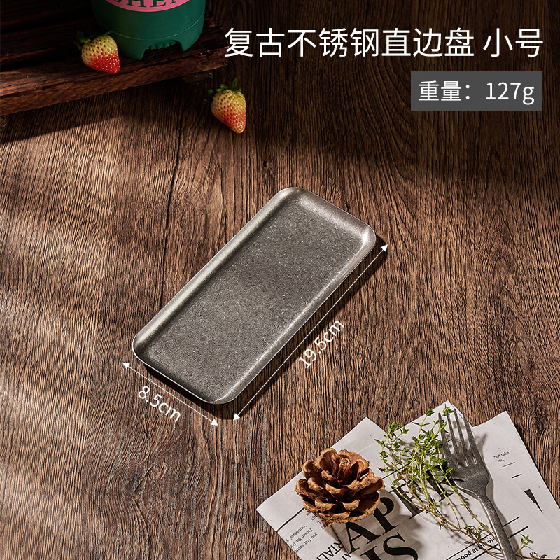 스테인레스 스틸 멋진 직사각형 카페 트레이 직선 가장자리 복고풍 바베큐 접시 플랫 플레이트 디저트 접시스토어 가기