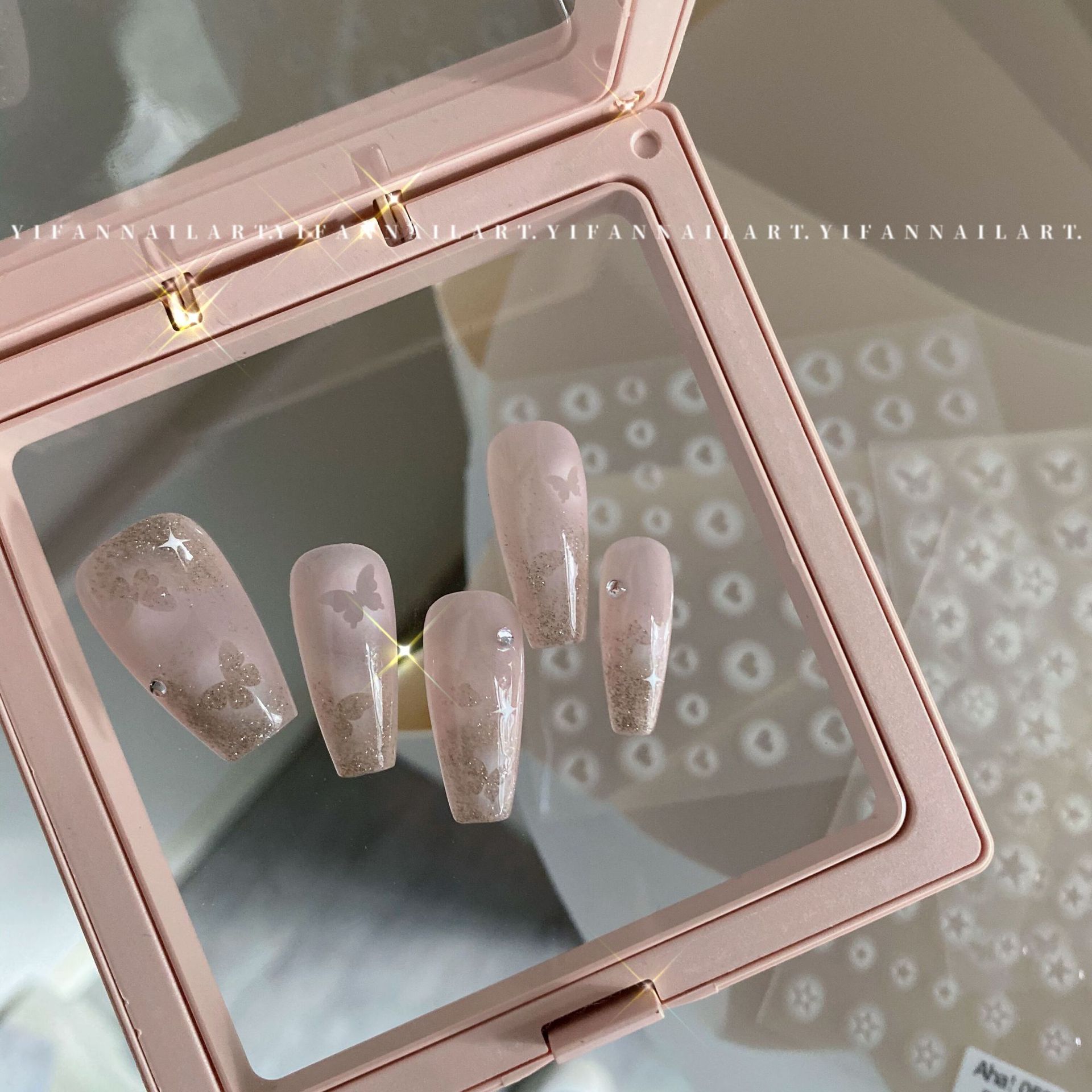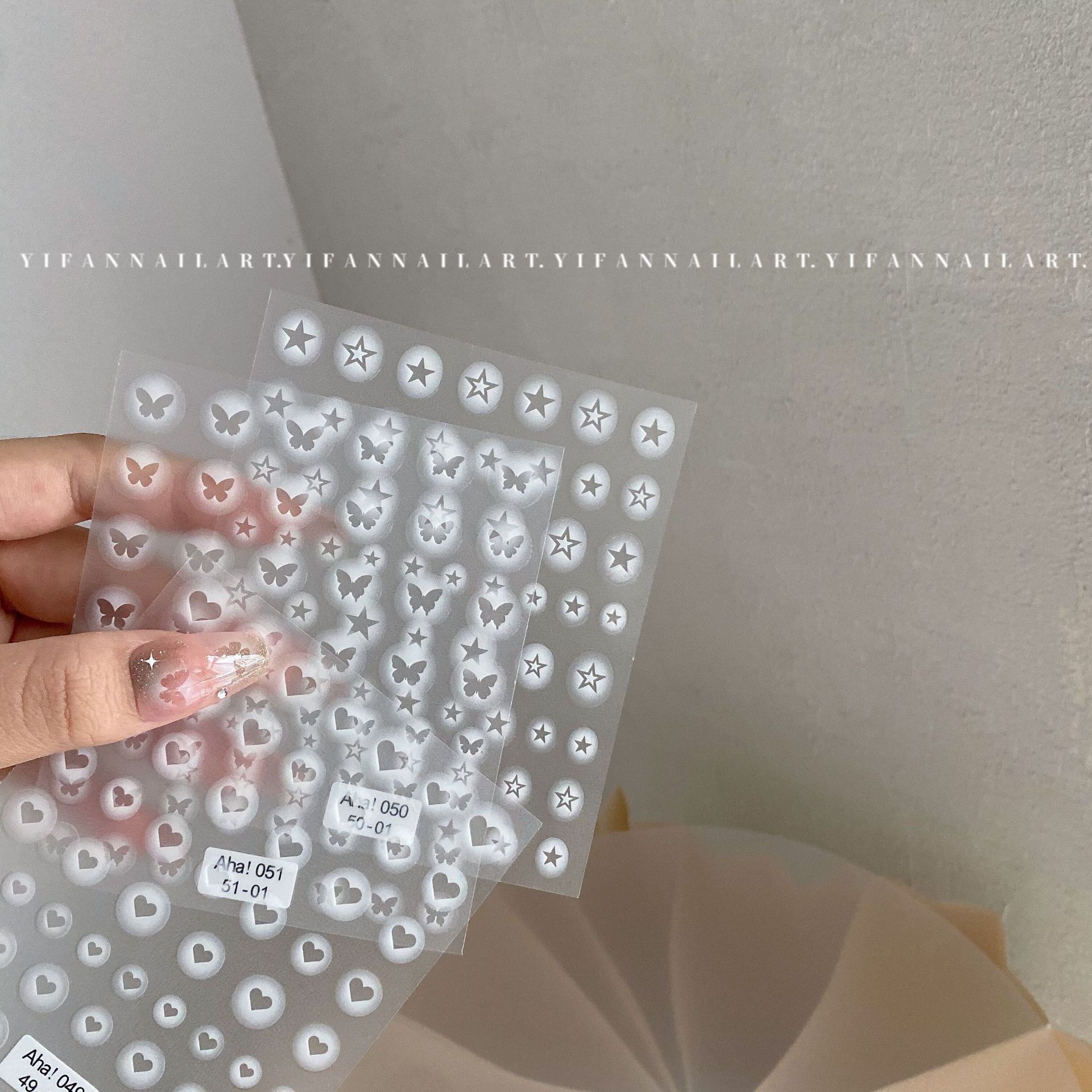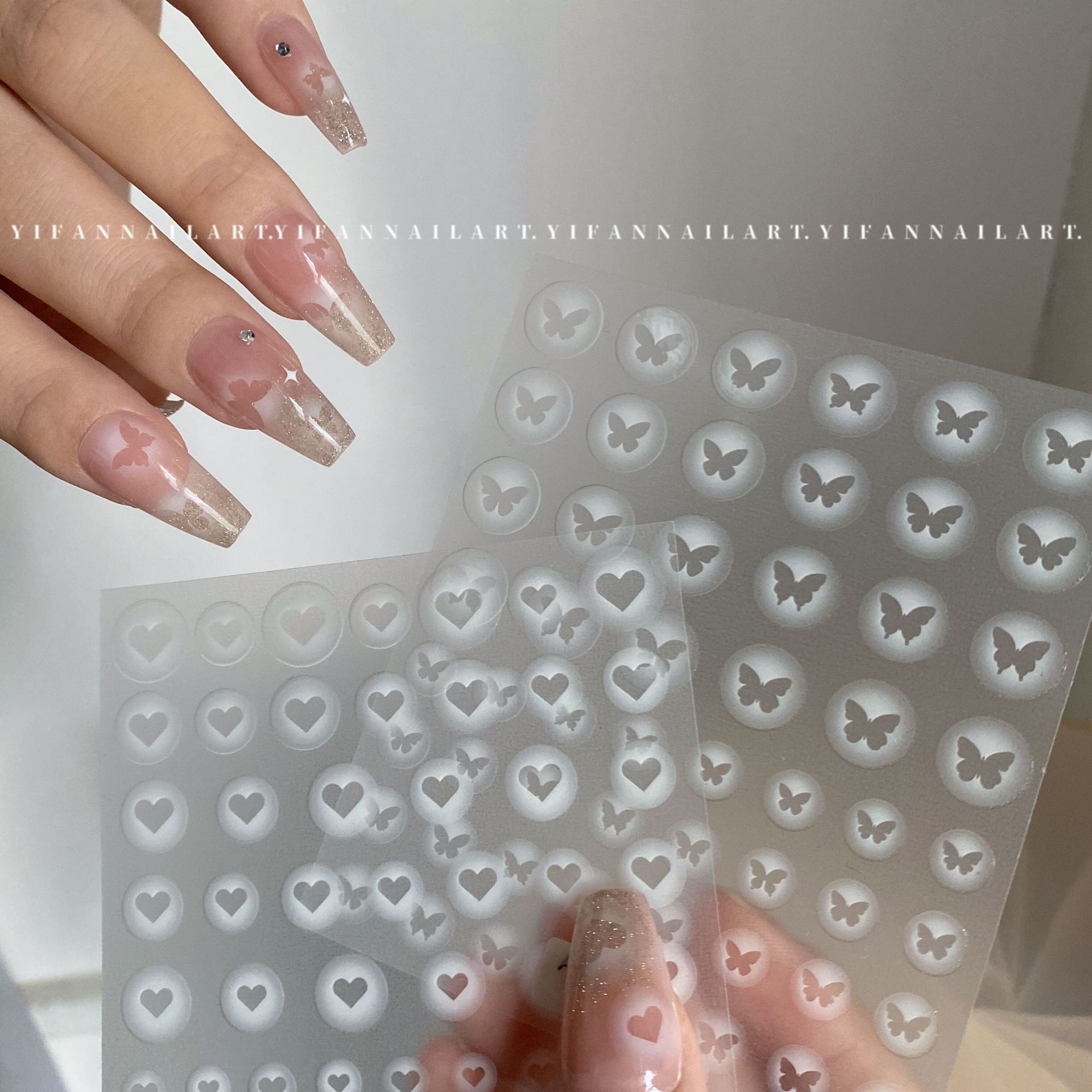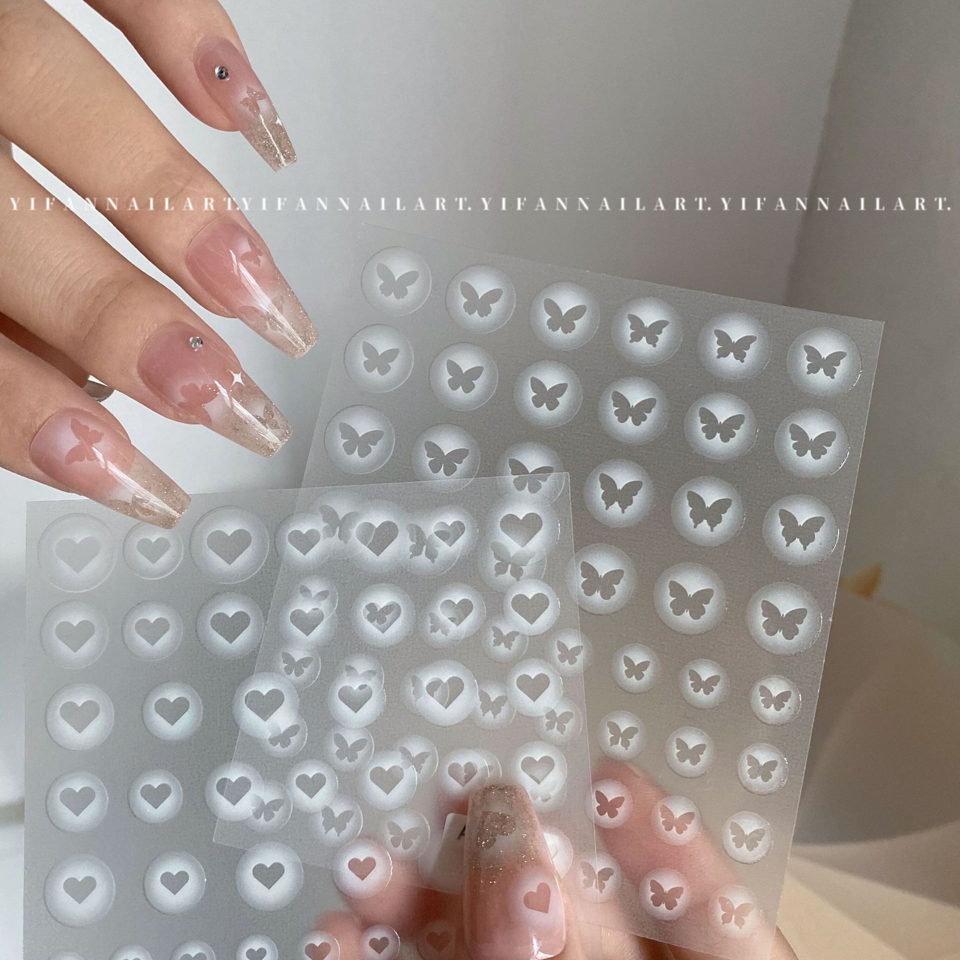 네일 아트 그라디언트 비네트 네일 스티커 프랑스 중공 스티커 사랑 별 나비 그라디언트 인쇄 종이 네일 장식스토어 가기