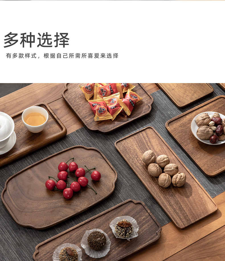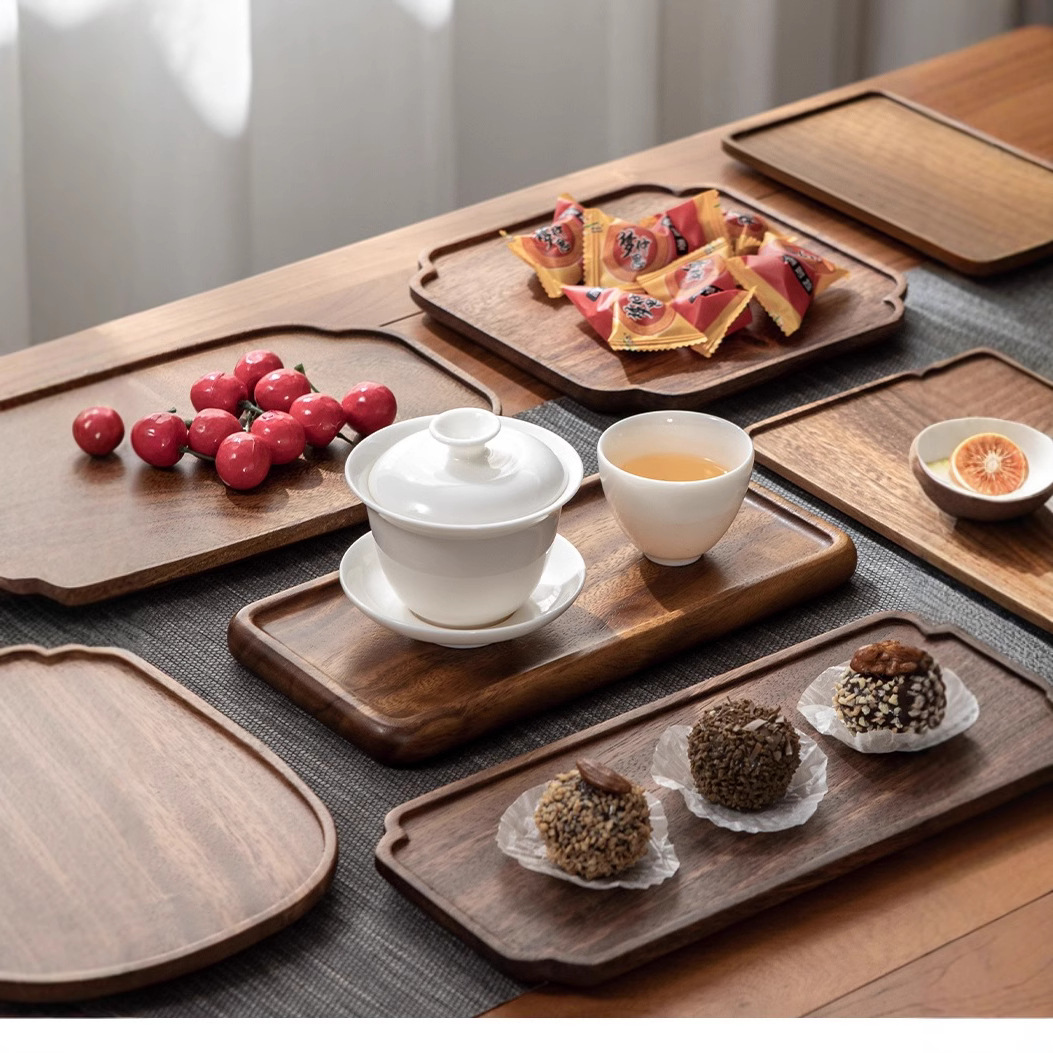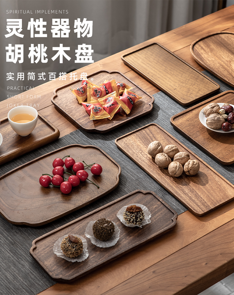 월넛 코스터 티 트레이 가정용 솔리드 우드 트레이 크리 과일 디저트 디너 트레이 직사각형 냄비 베어링 드라이 버블 트레이