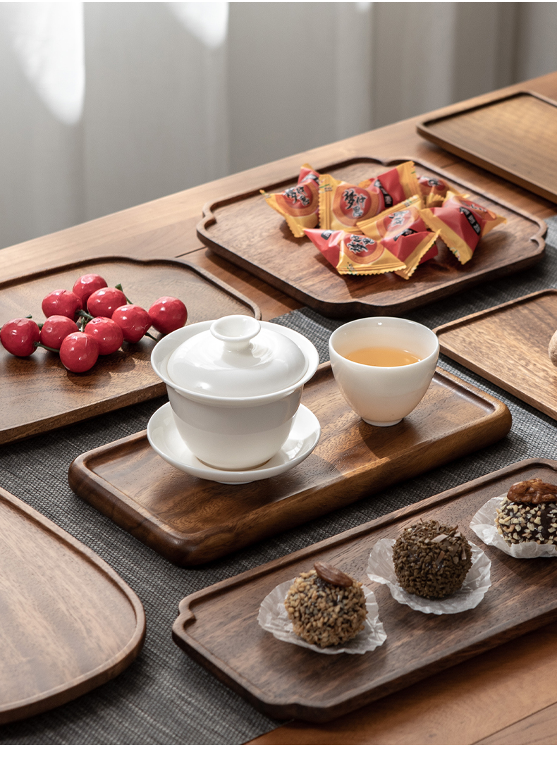 월넛 코스터 티 트레이 가정용 솔리드 우드 트레이 크리 과일 디저트 디너 트레이 직사각형 냄비 베어링 드라이 버블 트레이스토어 가기