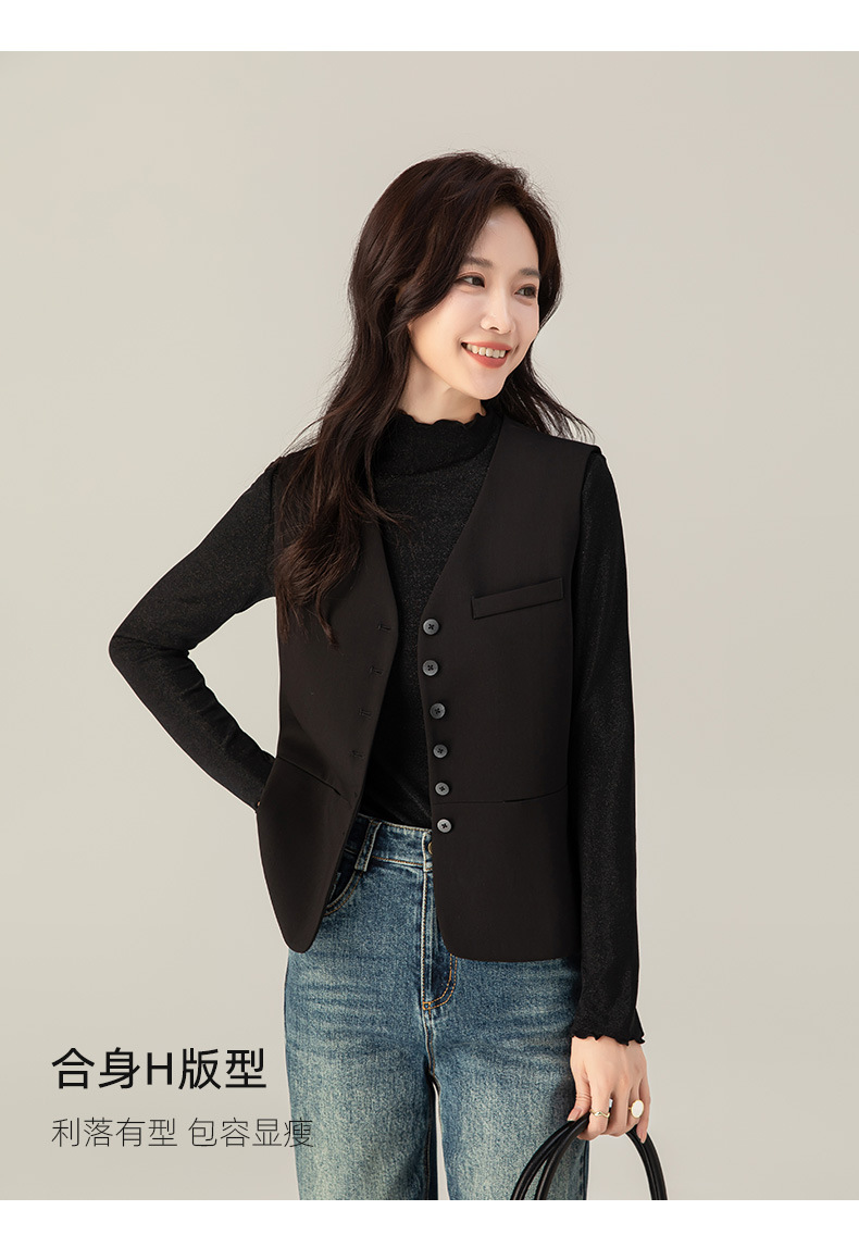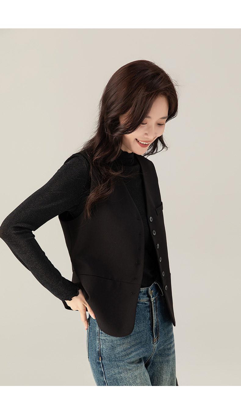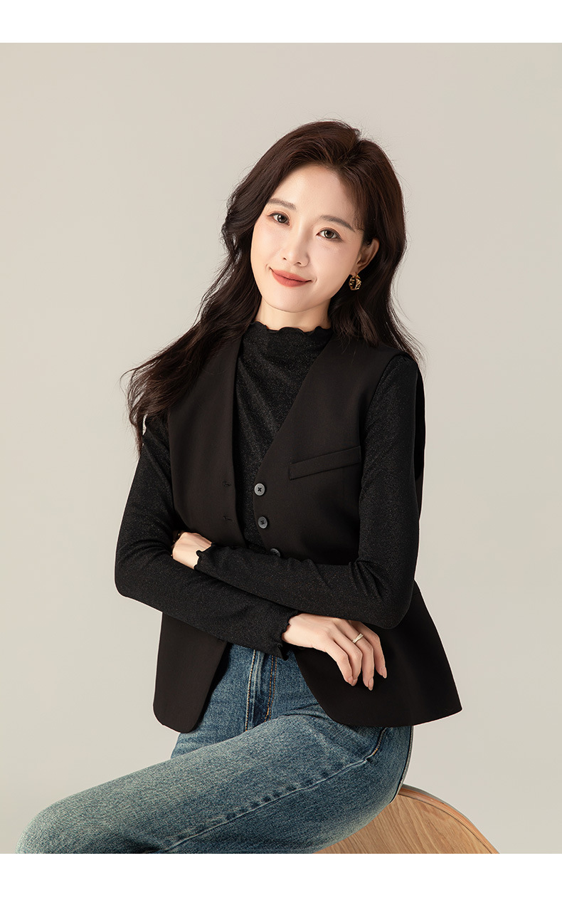 Xinge 프랑스 스타일 홍콩 스타일 빈티지 세트 조끼 여성 가을 및 겨울 슬림 핏 V 넥 스택 짧은 조끼 여성 외부 조끼