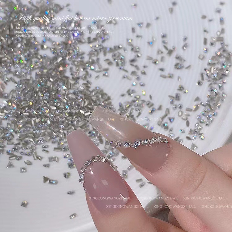 플랫 하단 반전 화이트 스몰 사이즈 지르콘 2024 새로운 스타일 플래시 미니 특수 모양의 플랫 하단 네일 아트 지르콘 다이아몬드 혼합