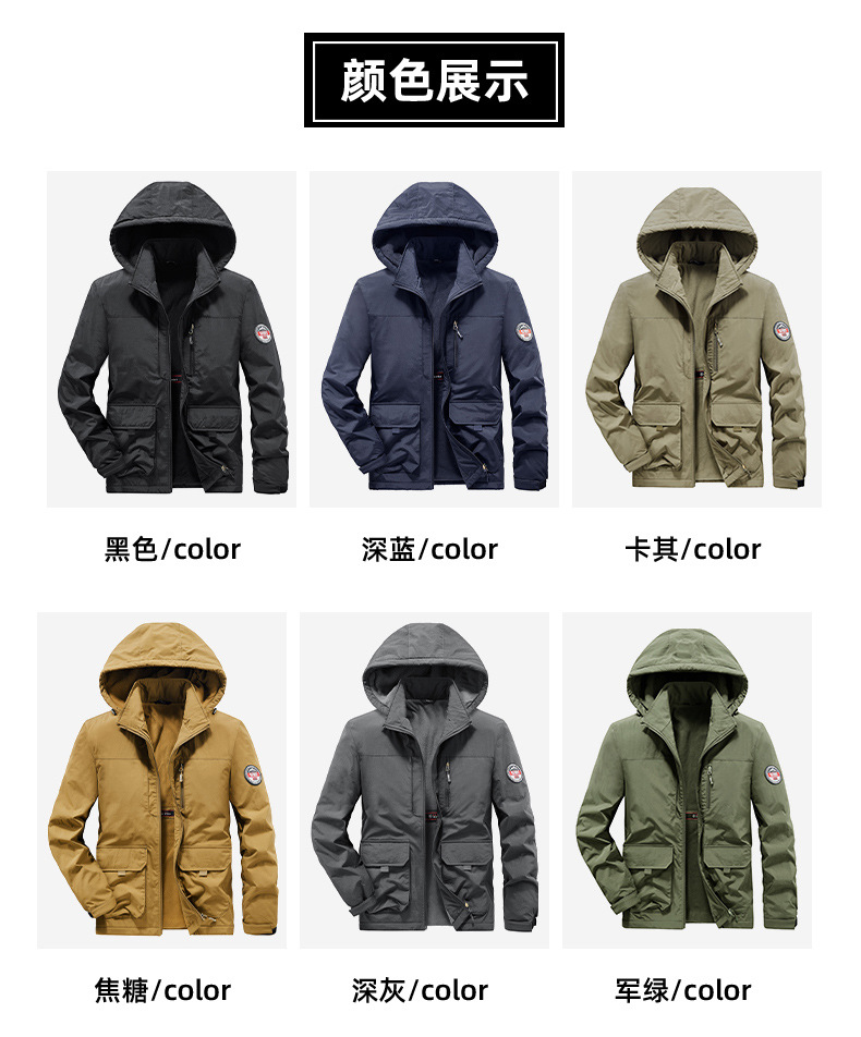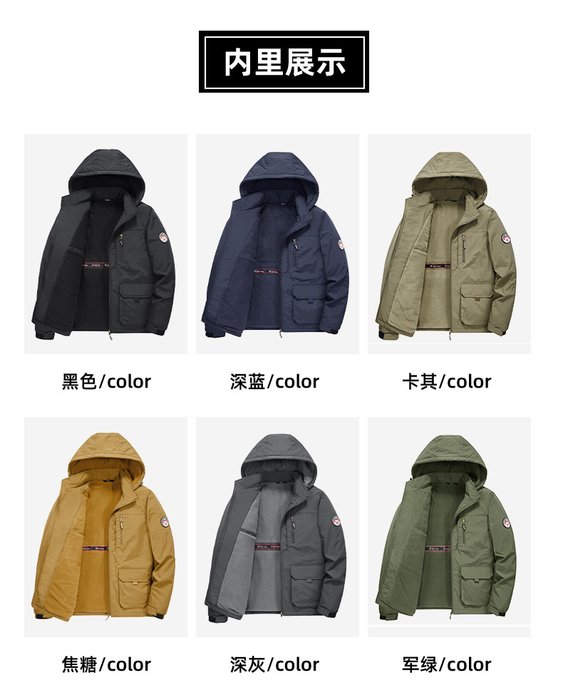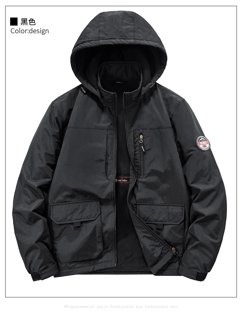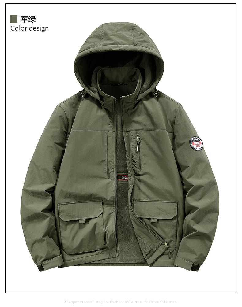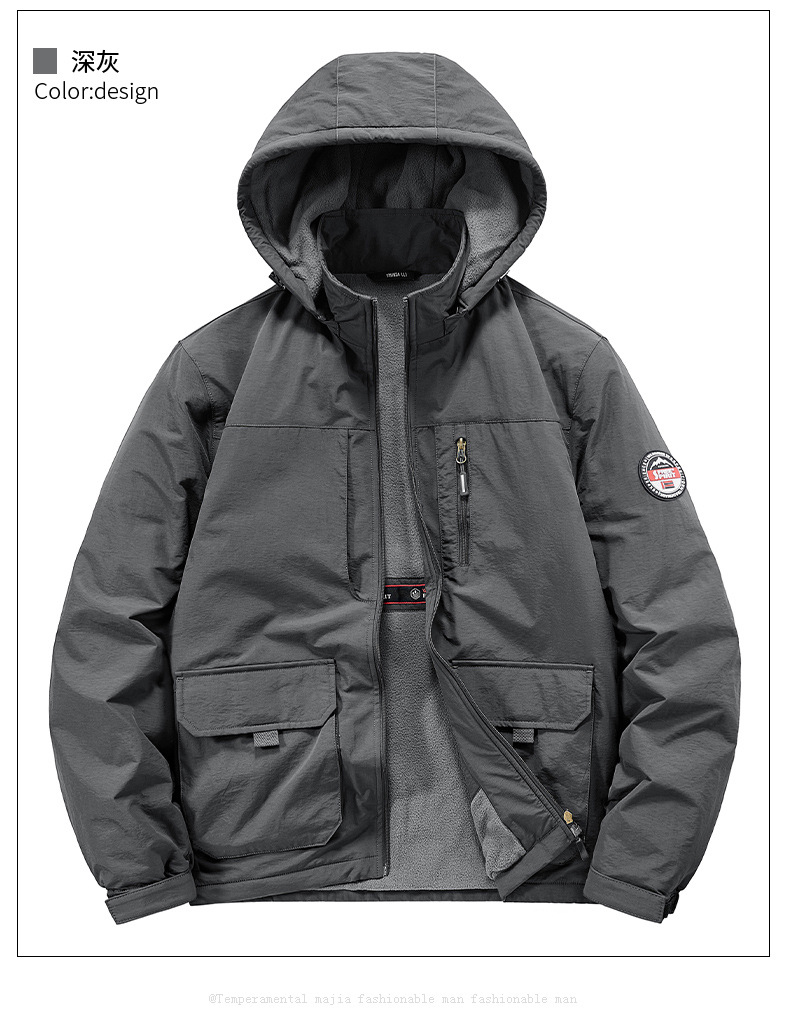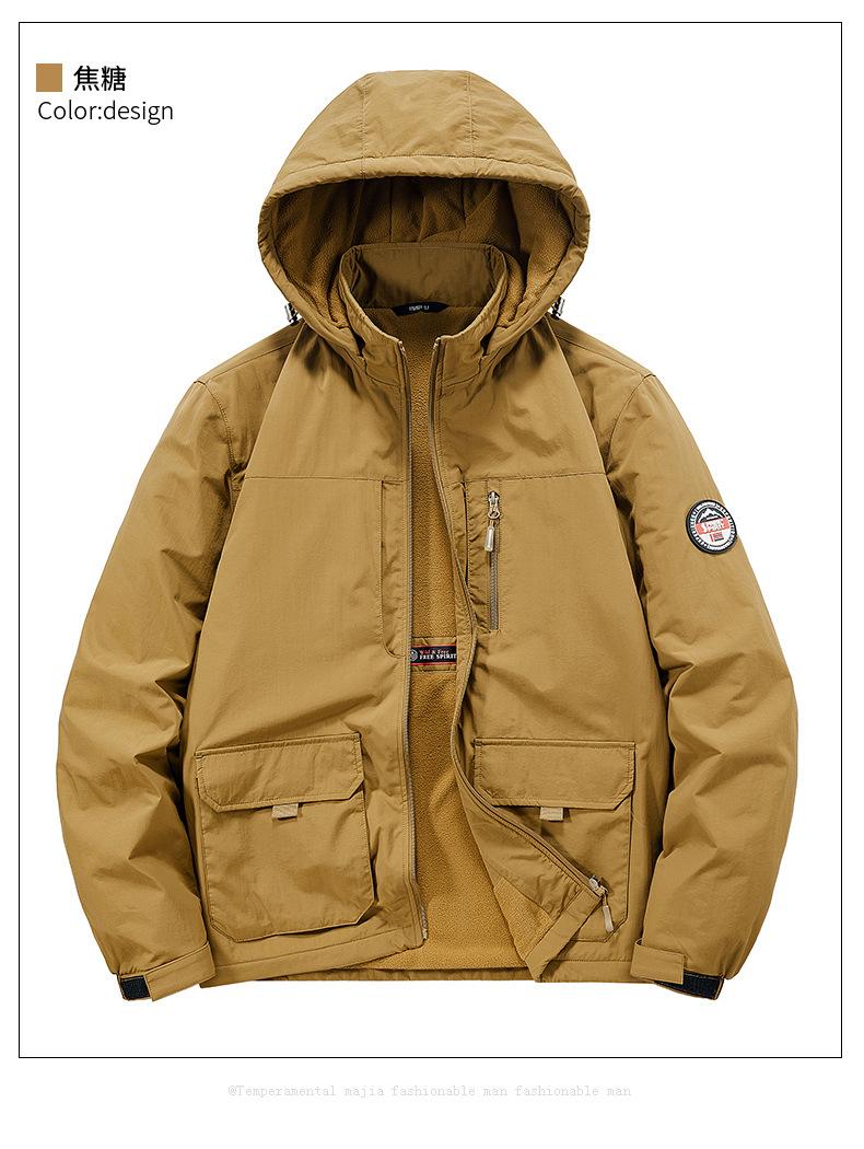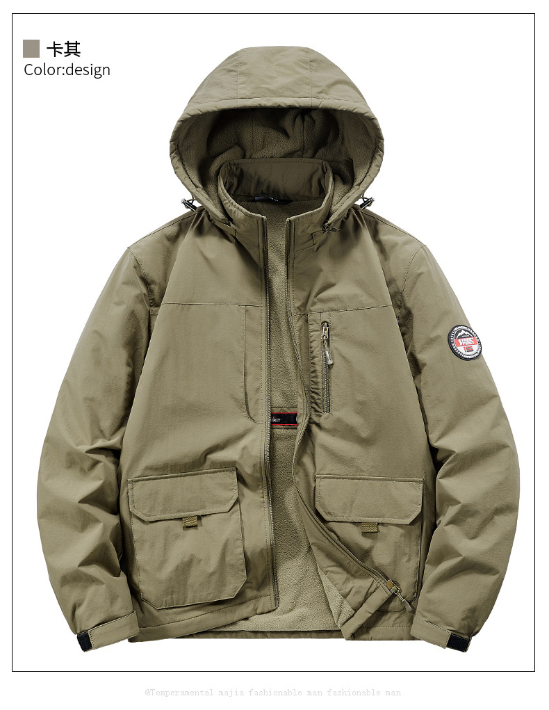 가을과 겨울 양털 재킷 남자의 두꺼운 방풍 야외 멀티 포켓 중년 및 노인 아빠 스포츠 캐주얼 작업 재킷