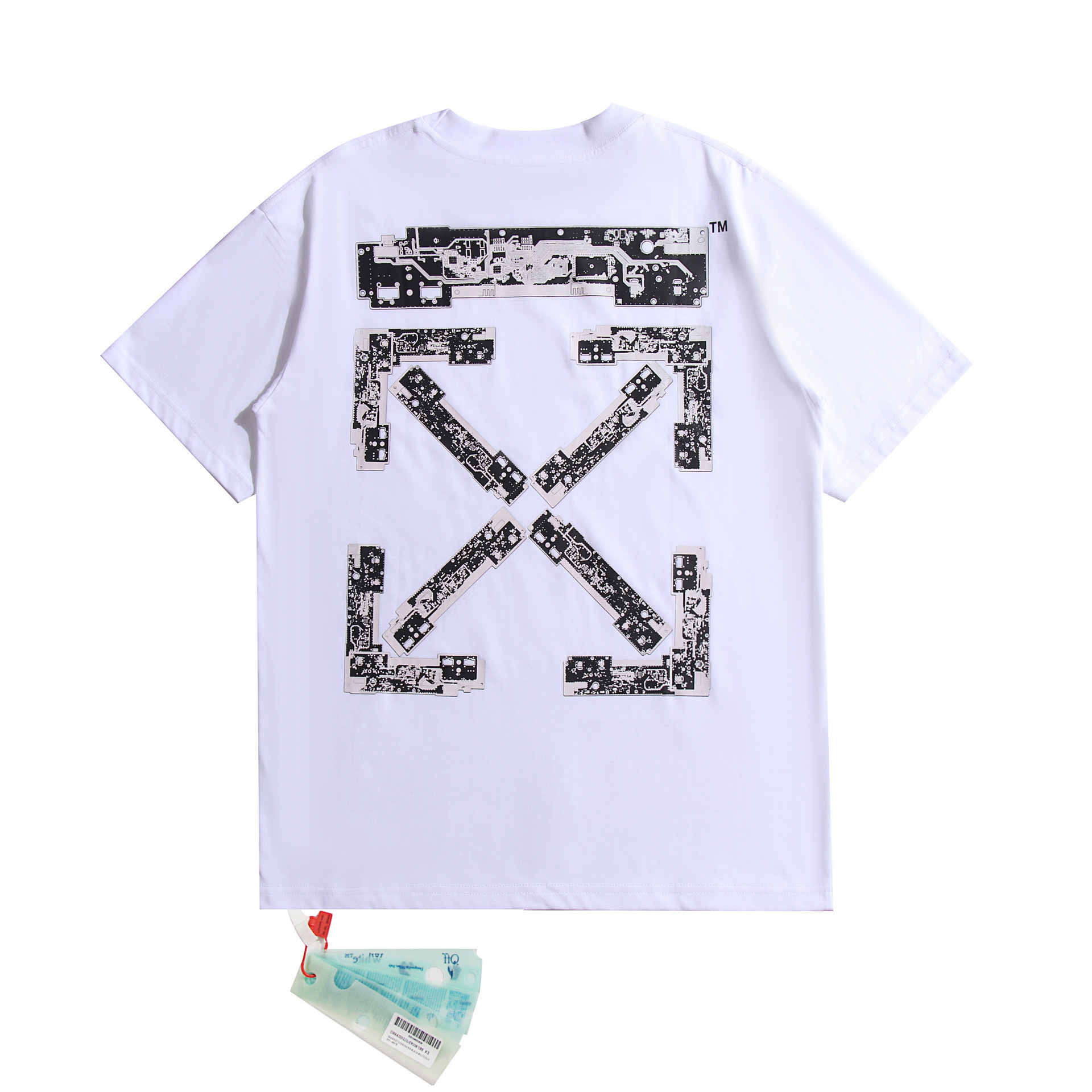 새로운 유럽과 미국의 패션 브랜드 OW 기하학적 화살표 패턴 인쇄 티셔츠 느슨한 캐주얼 반팔 크로스스토어 가기