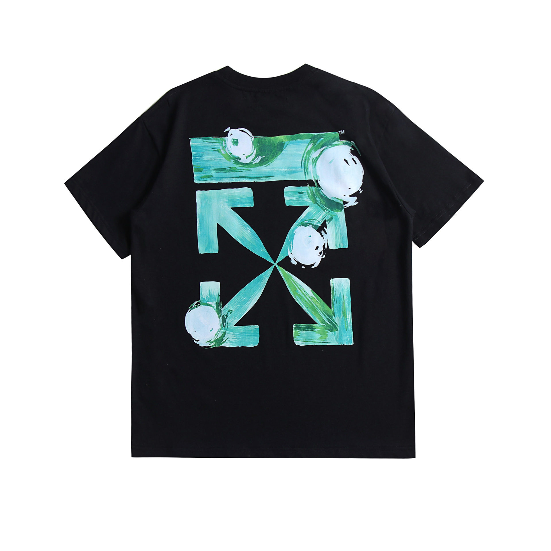 새로운 유럽과 미국의 패션 브랜드 OW 기하학적 화살표 패턴 인쇄 티셔츠 느슨한 캐주얼 반팔 크로스