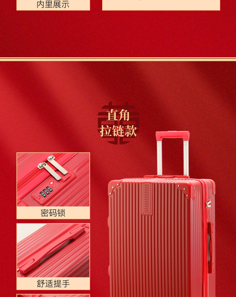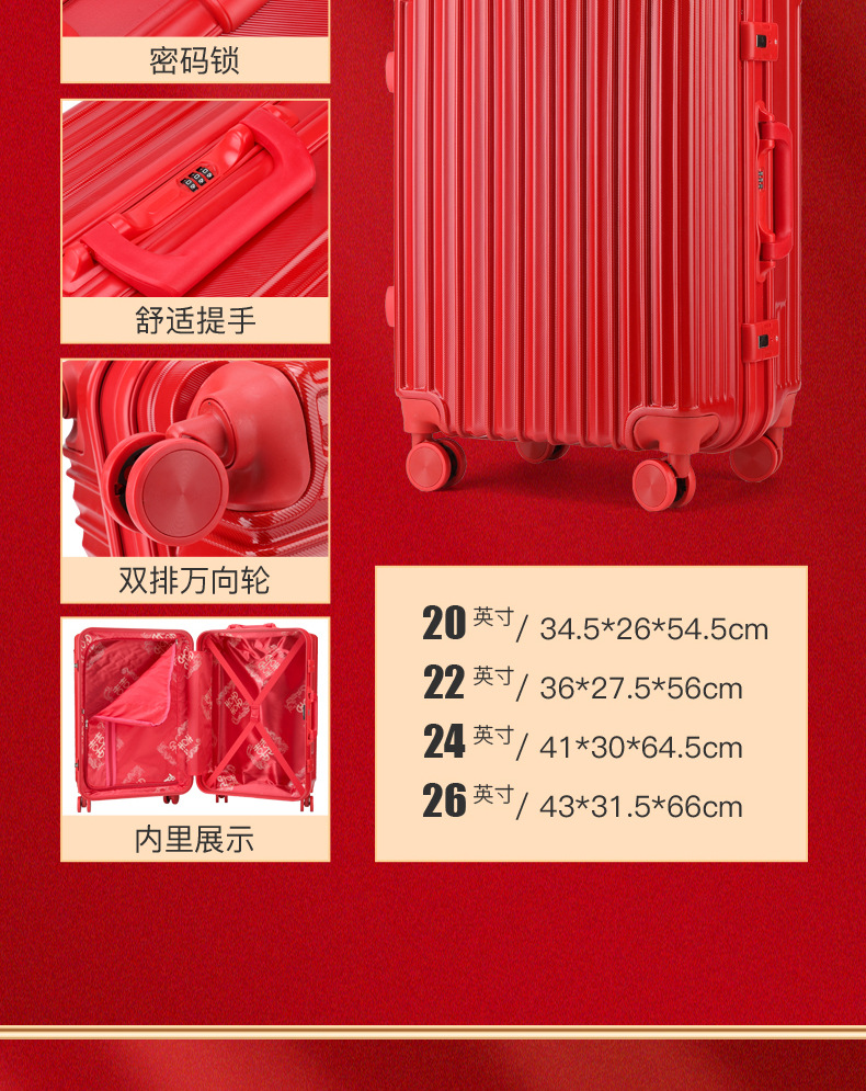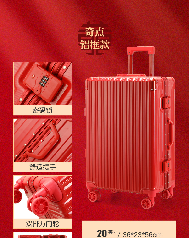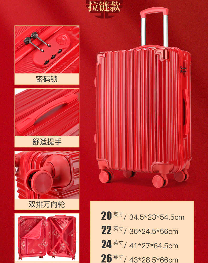 결혼식 수하물 케이스 신부 Dowry 케이스 동반 케이스 빨간 케이스 암호 트롤리 케이스 결혼식을위한 여성 수하물 케이스