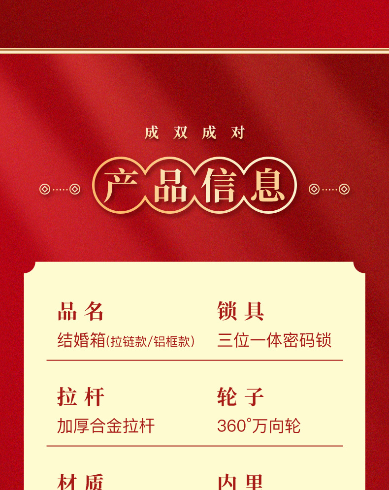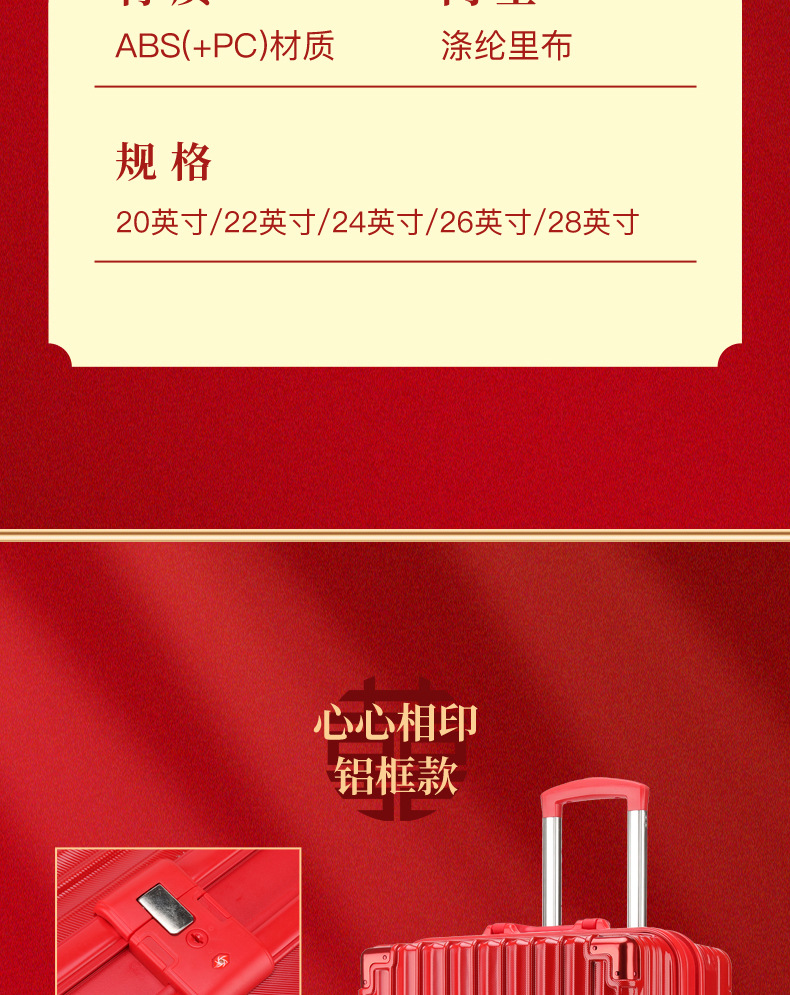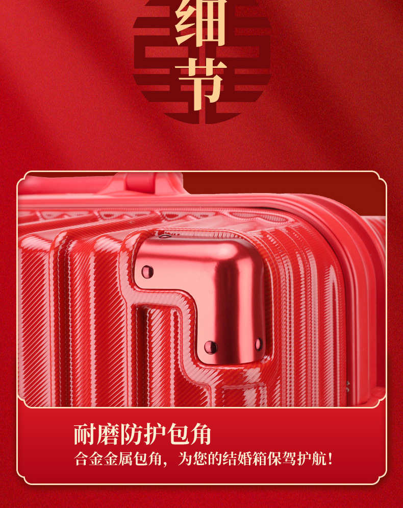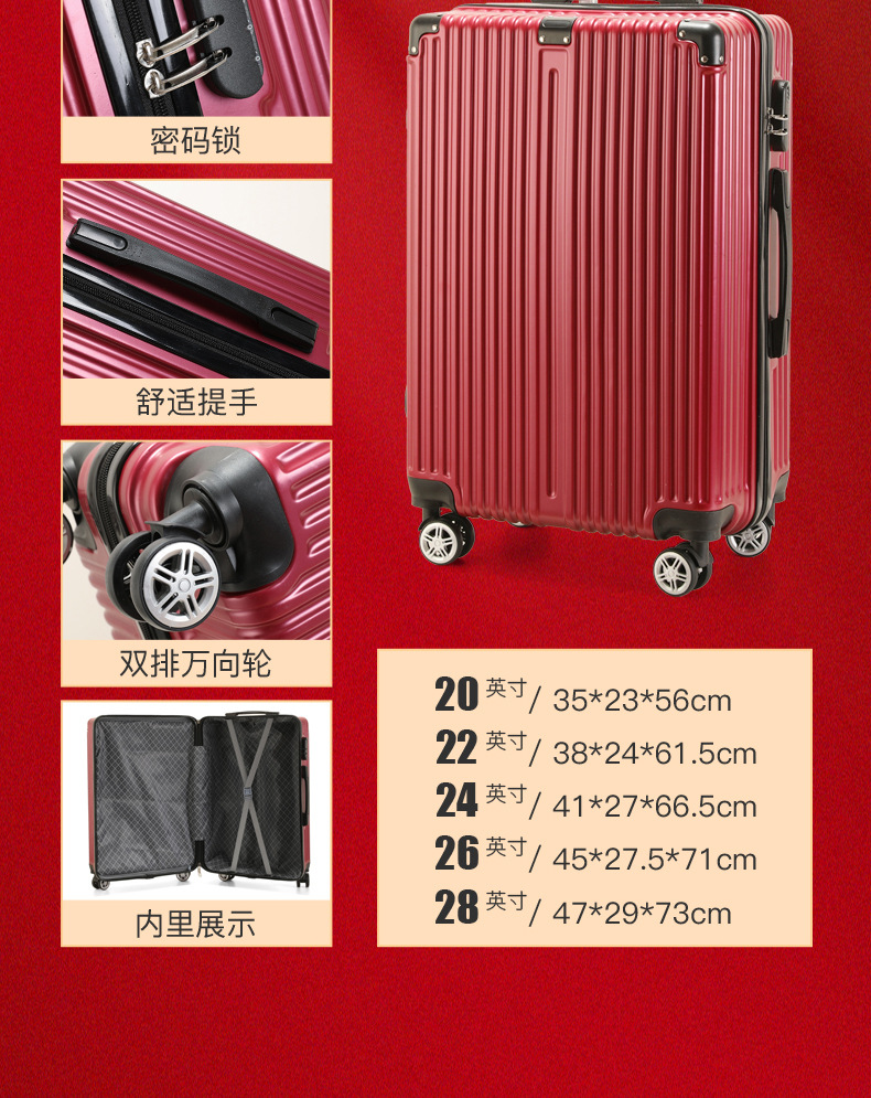 결혼식 수하물 케이스 신부 Dowry 케이스 동반 케이스 빨간 케이스 암호 트롤리 케이스 결혼식을위한 여성 수하물 케이스