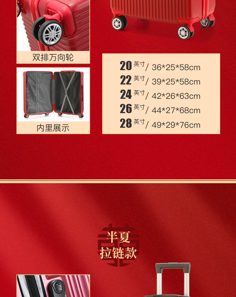 결혼식 수하물 케이스 신부 Dowry 케이스 동반 케이스 빨간 케이스 암호 트롤리 케이스 결혼식을위한 여성 수하물 케이스스토어 가기