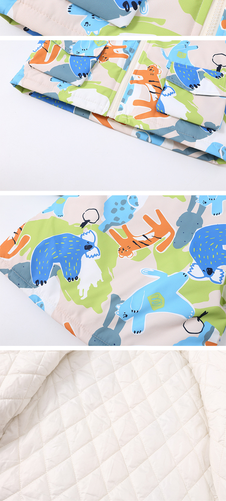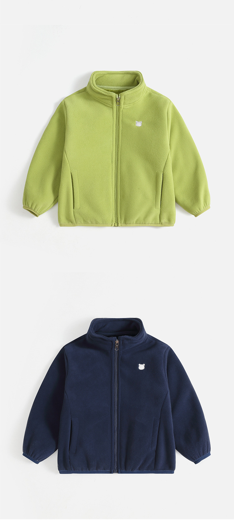 • 파란색과 녹색 재킷 + 녹색 폴라 플리스 안감