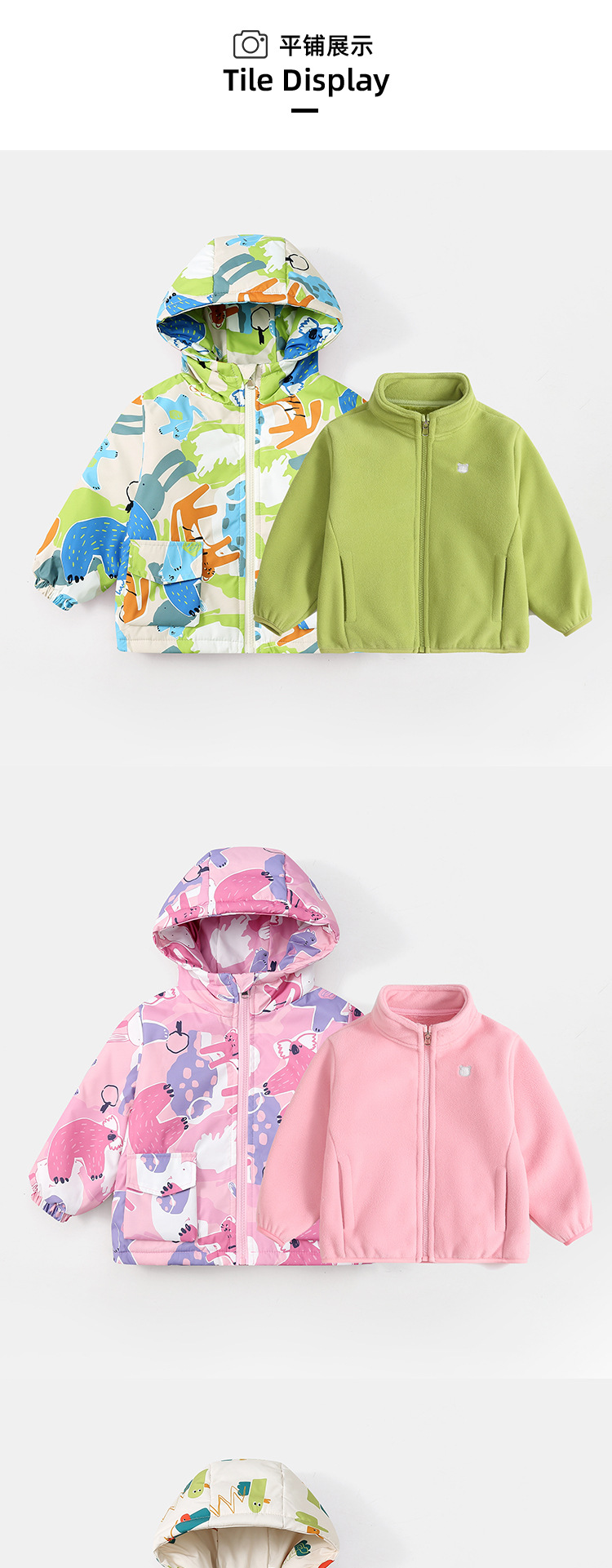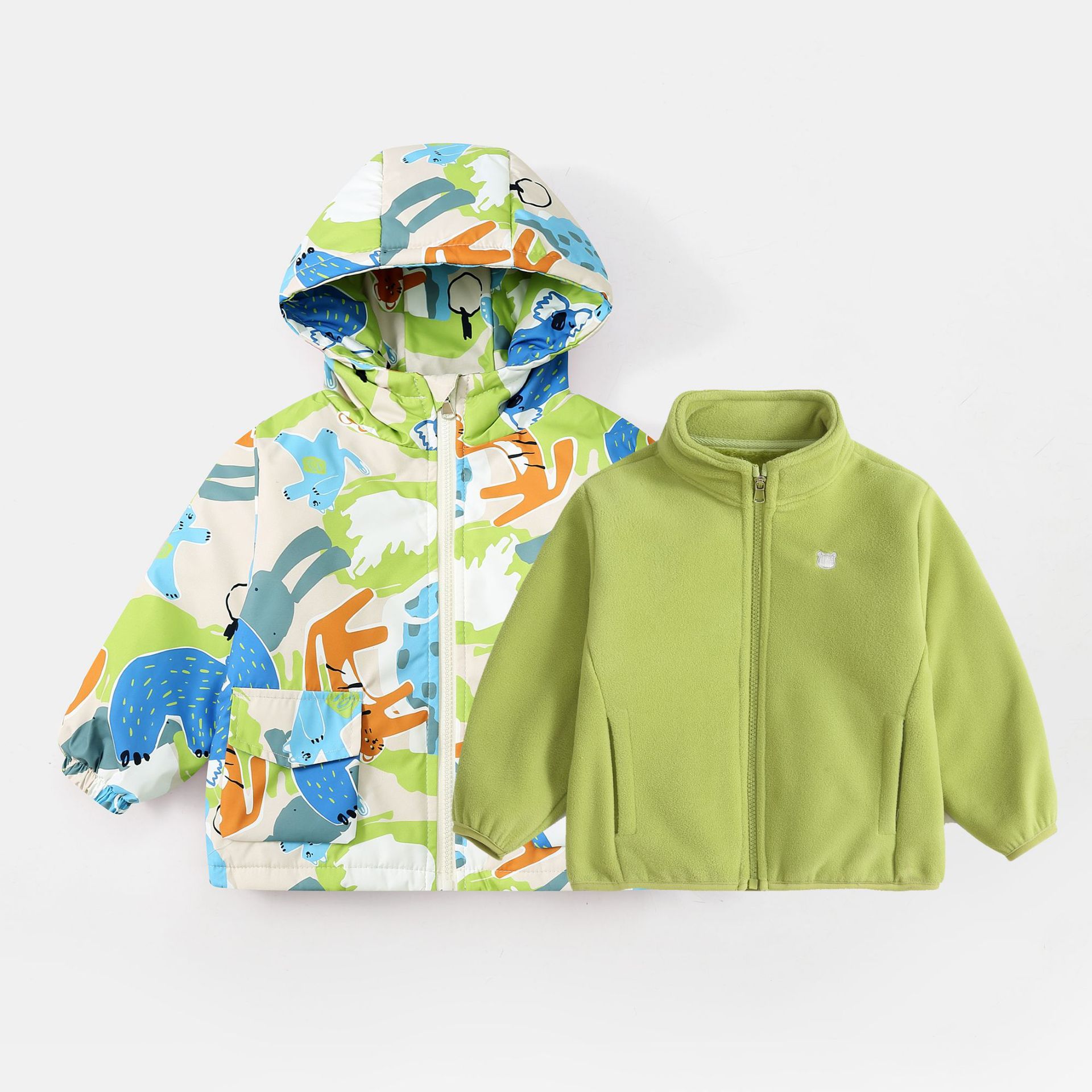 아동용 재킷 3-in-one 2025 새로운 스타일 소년과 소녀 재킷 폴라 플리스 투피스 세트 플러스 벨벳 가을 의류스토어 가기