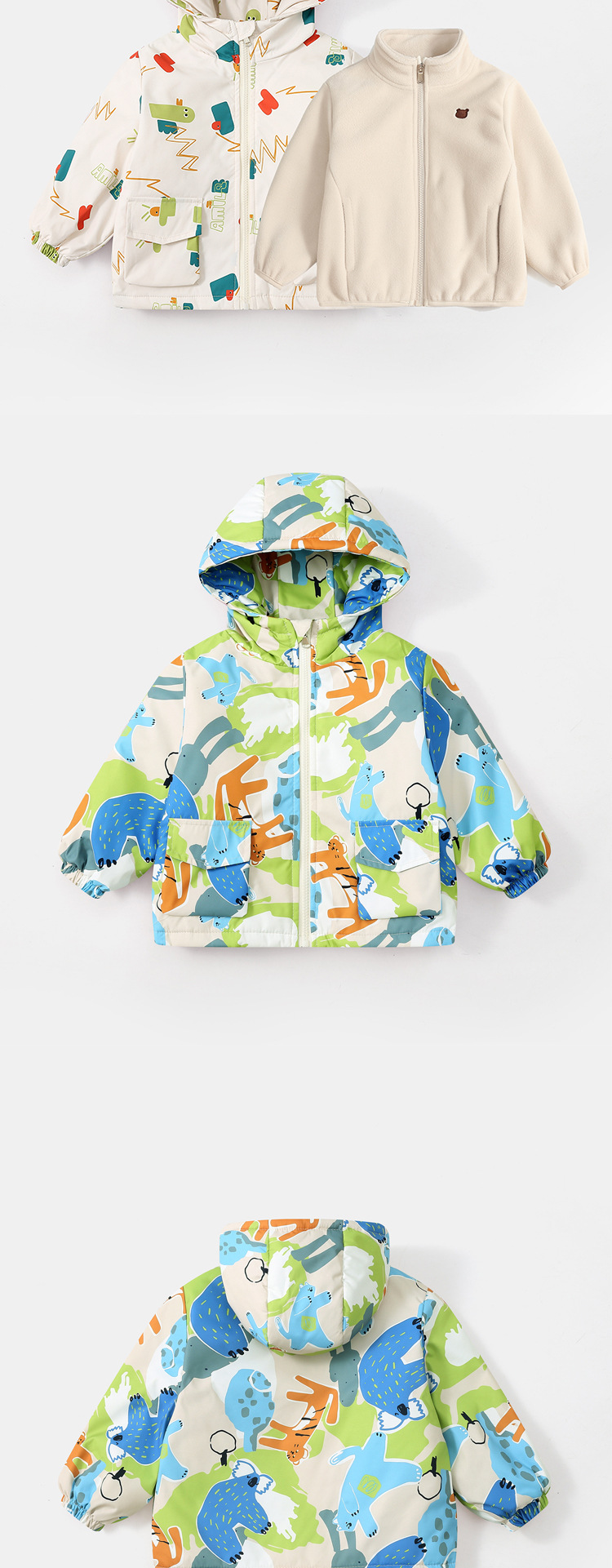 아동용 재킷 3-in-one 2025 새로운 스타일 소년과 소녀 재킷 폴라 플리스 투피스 세트 플러스 벨벳 가을 의류
