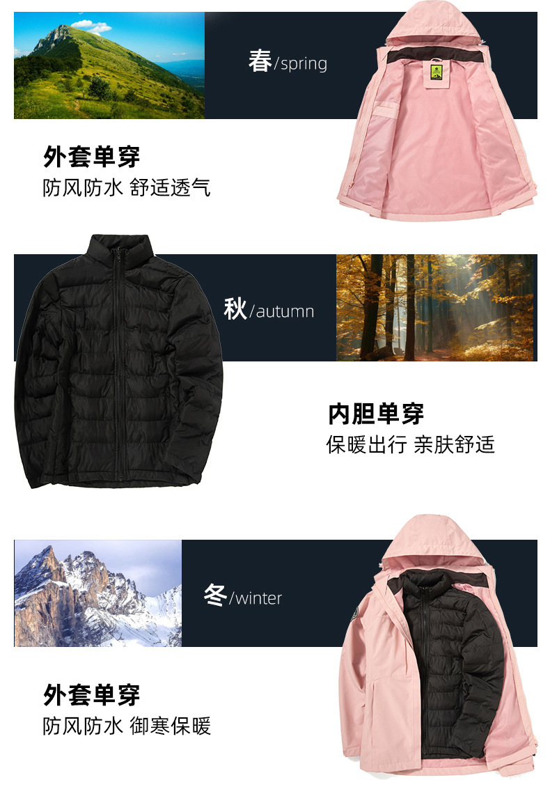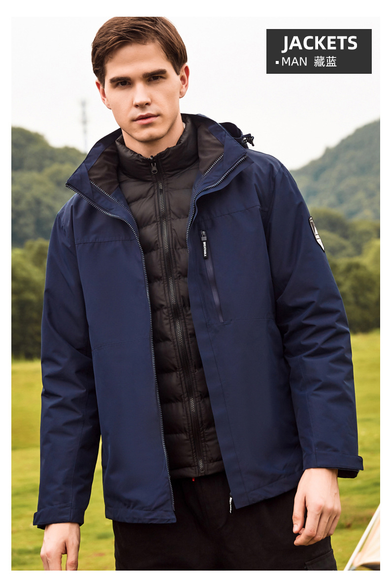 면 안감 재킷 3-in-1 방풍 방수 등산복 아우터 야외 기업 활동 작업복 두꺼운스토어 가기