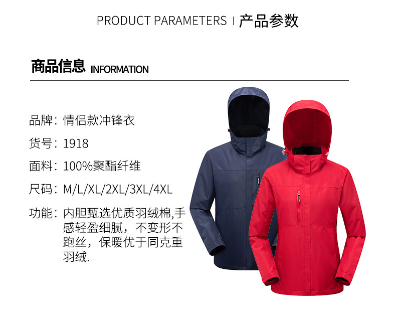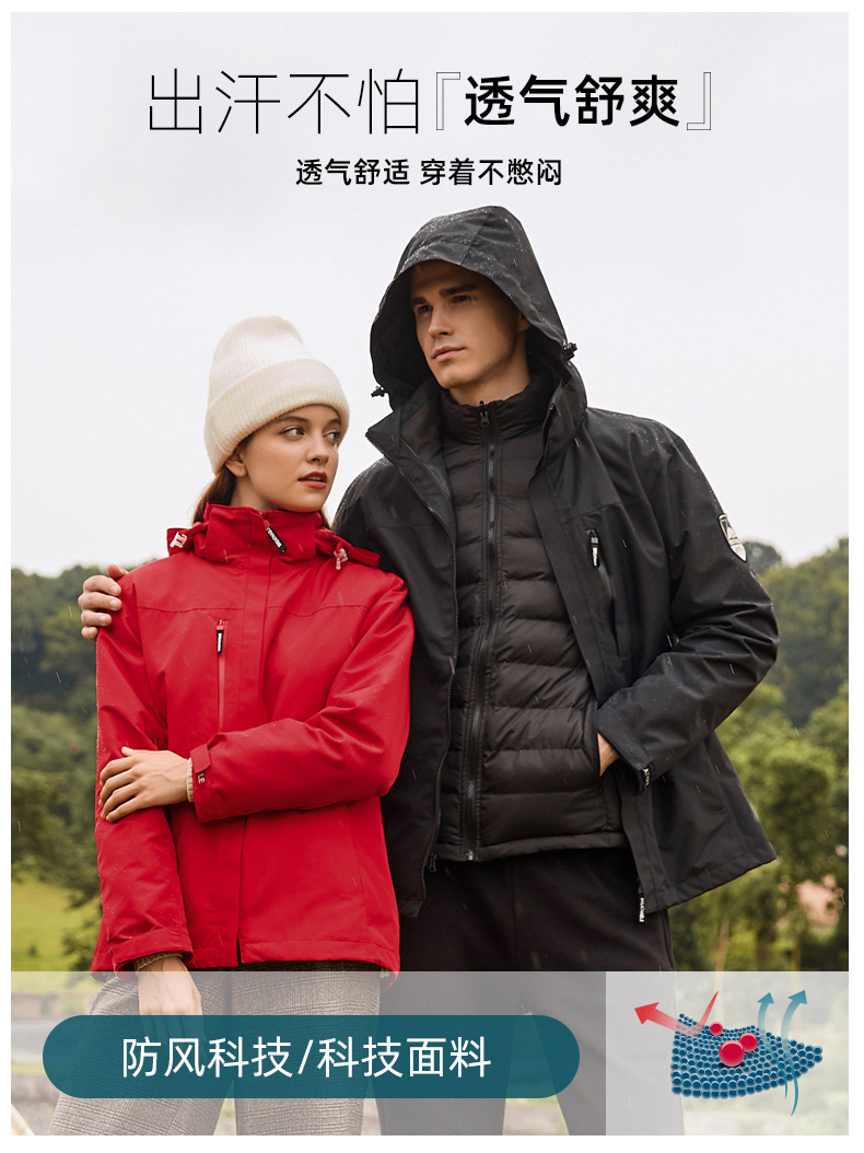 면 안감 재킷 3-in-1 방풍 방수 등산복 아우터 야외 기업 활동 작업복 두꺼운
