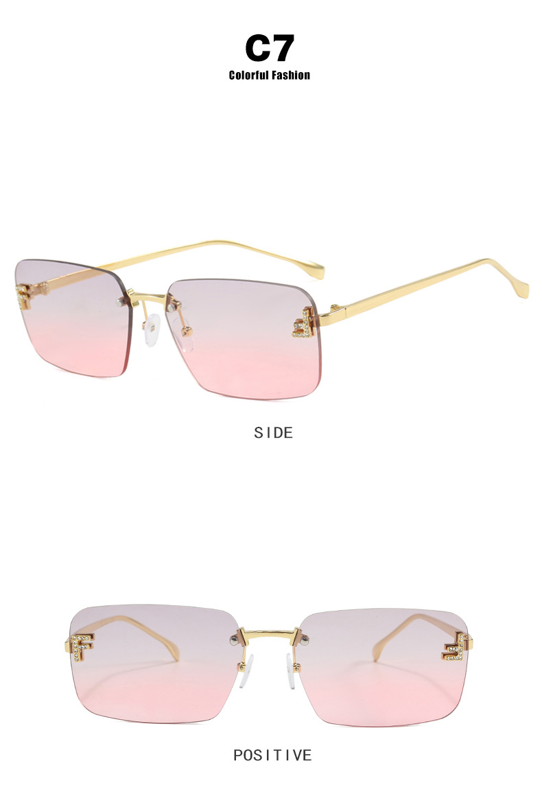 국경 간 F 글자 다이아몬드가 박힌 여성 선글라스 트렌디 한 금속 프레임리스 선글라스 패션 캣워크 스트리트 샷 선글라스