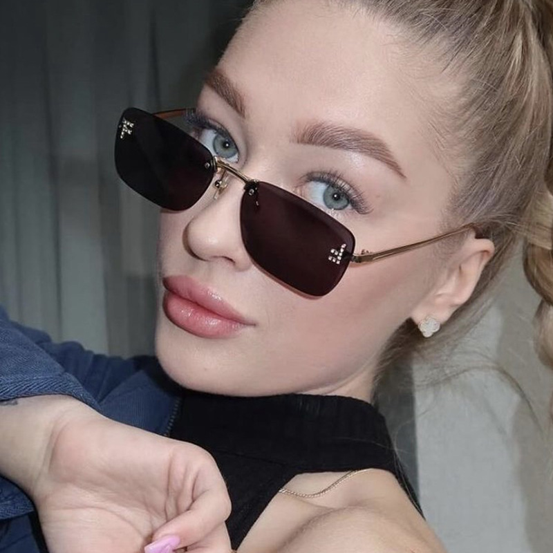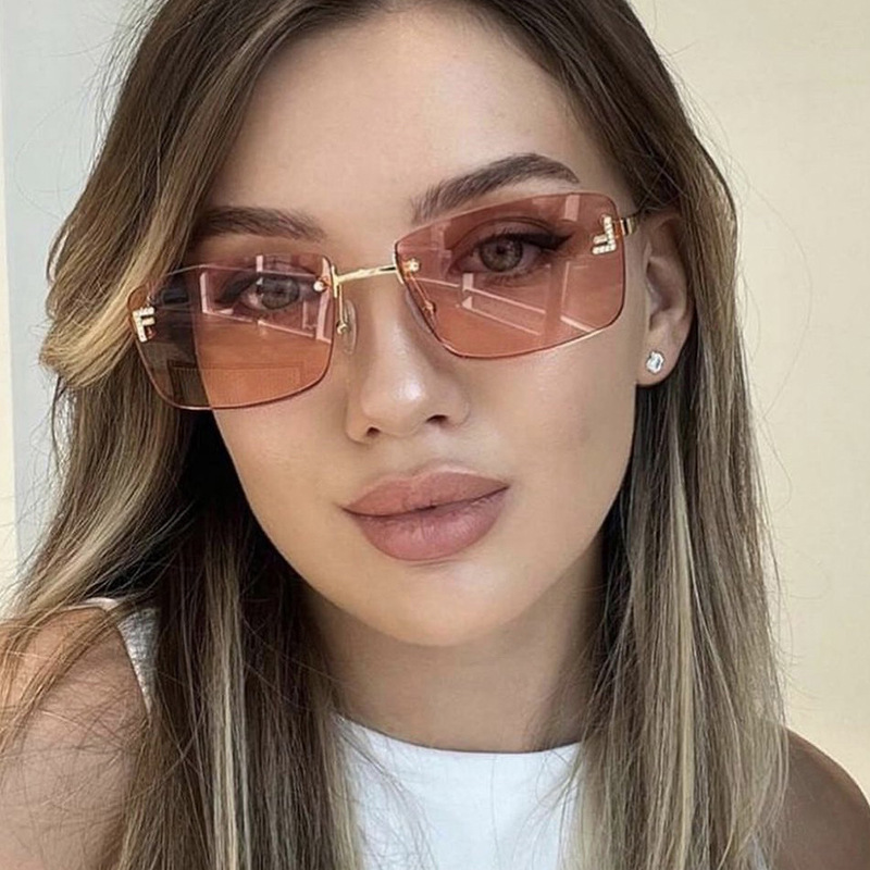 국경 간 F 글자 다이아몬드가 박힌 여성 선글라스 트렌디 한 금속 프레임리스 선글라스 패션 캣워크 스트리트 샷 선글라스스토어 가기