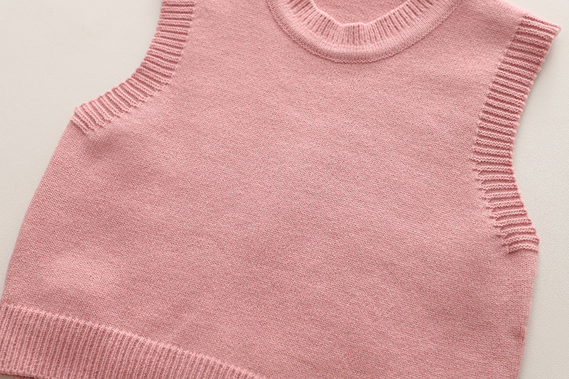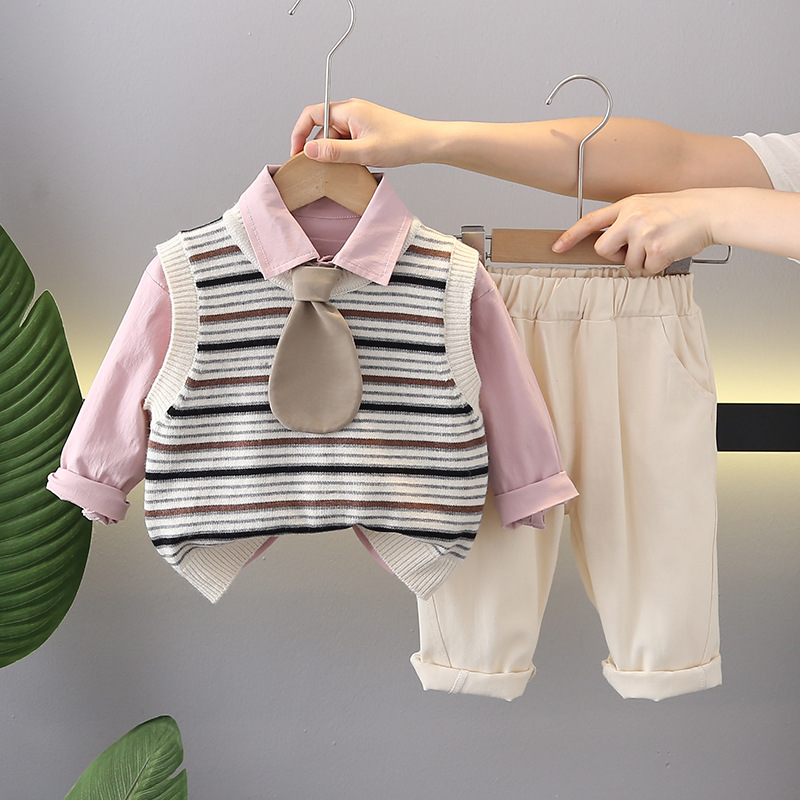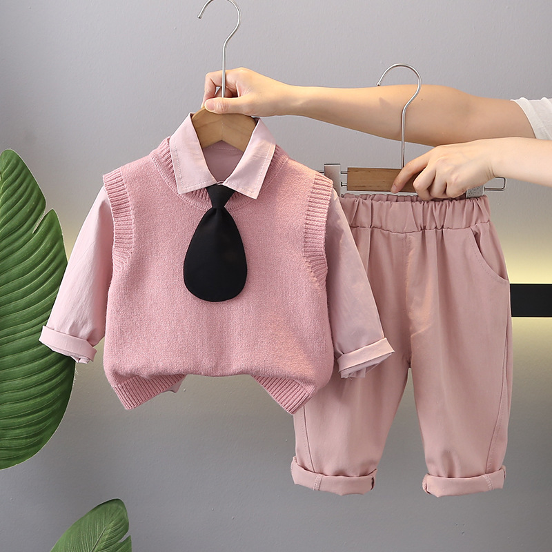 소년의 봄과 가을 세트 2024 새로운 어린이 원피스 서양식 아기의 가을 원피스 단색 스웨터 조끼 3 피스 세트