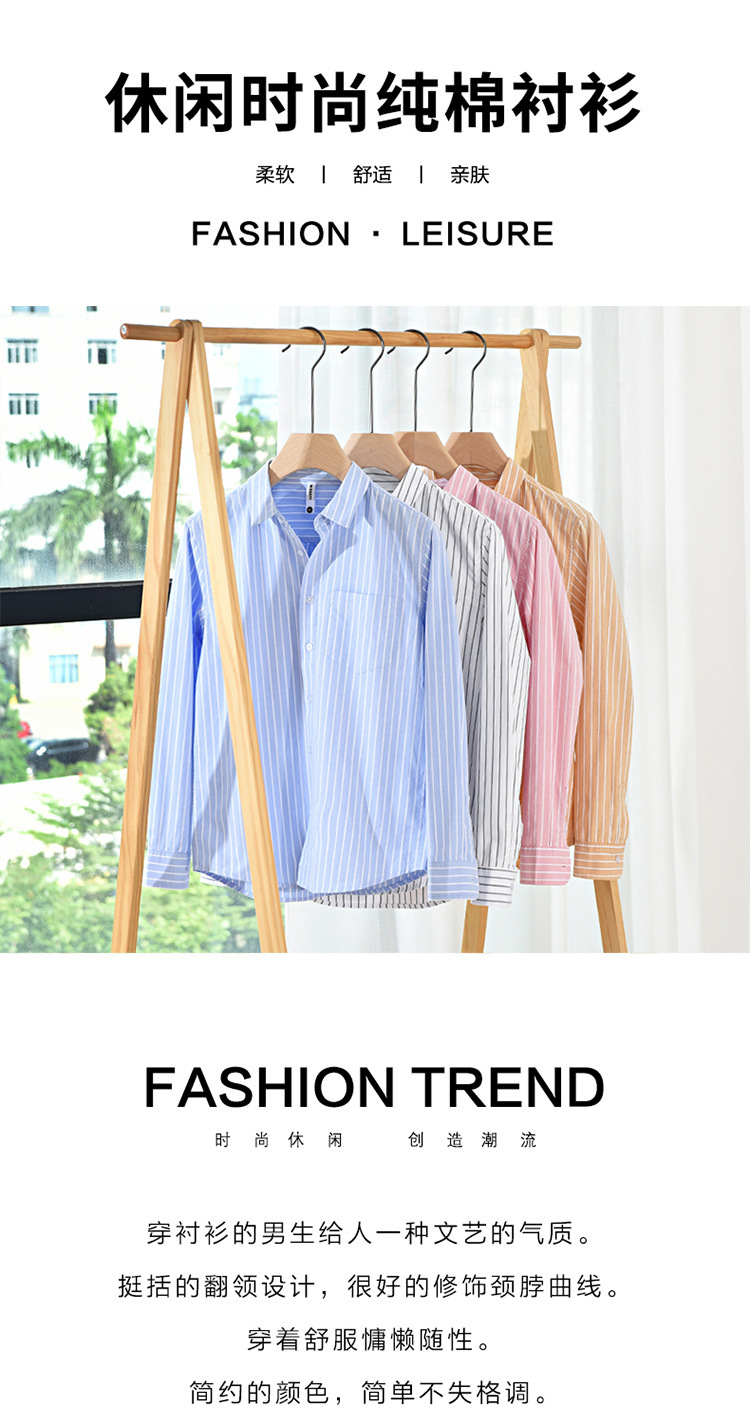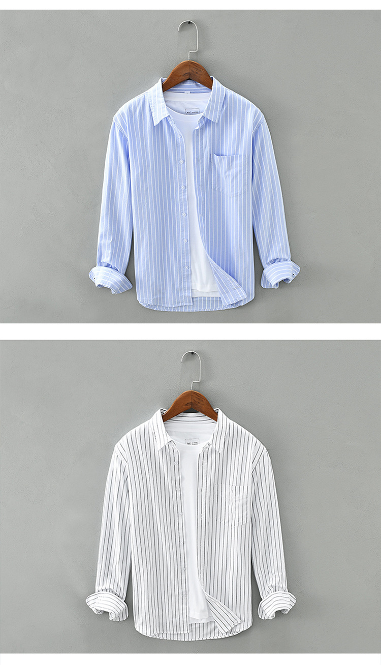 남성용 순면 스트라이프 긴팔 셔츠 새로운 트렌디 캐주얼 심플 다용도 셔츠 제조업체 직접 판매 지원 사용자 정의스토어 가기