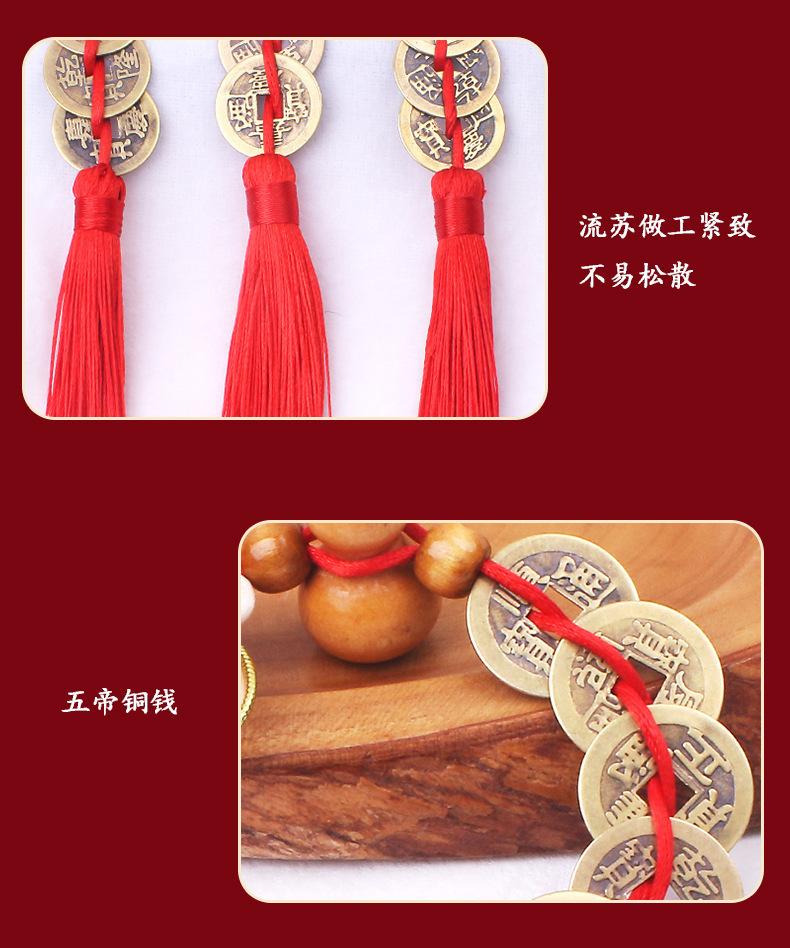 • 다채로운 밧줄 이중 술 복숭아 나무 조롱박 다섯 황제 동전