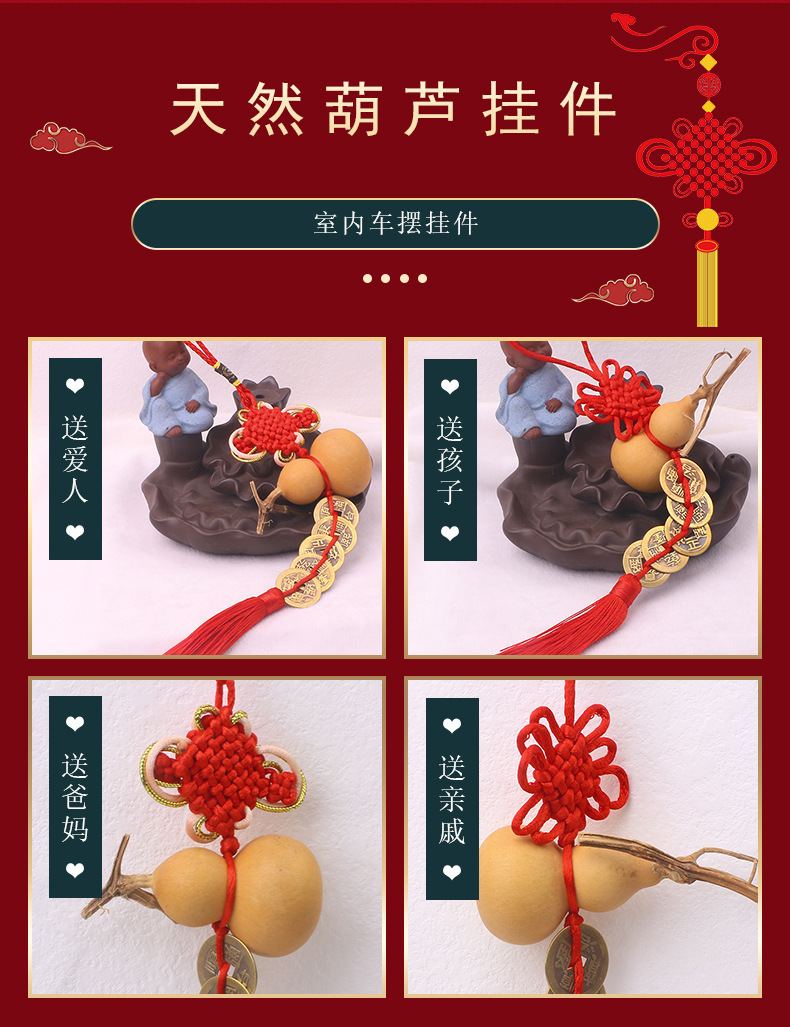 • 순수한 붉은 매듭이 열린 천연 조롱박 다섯 황제 동전