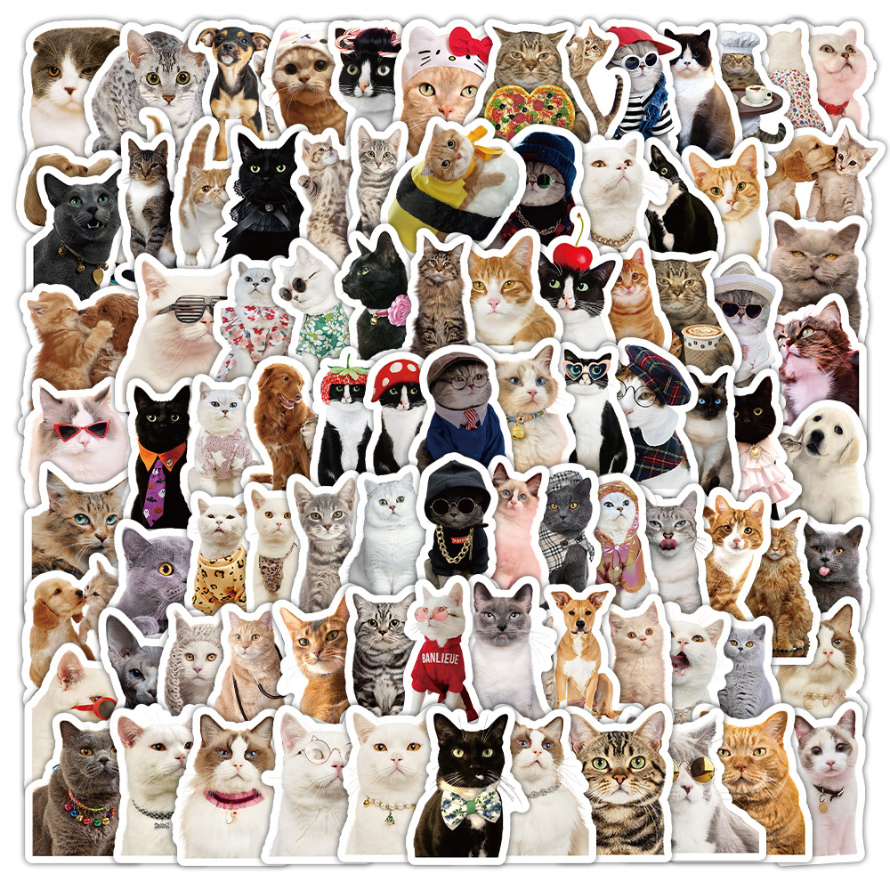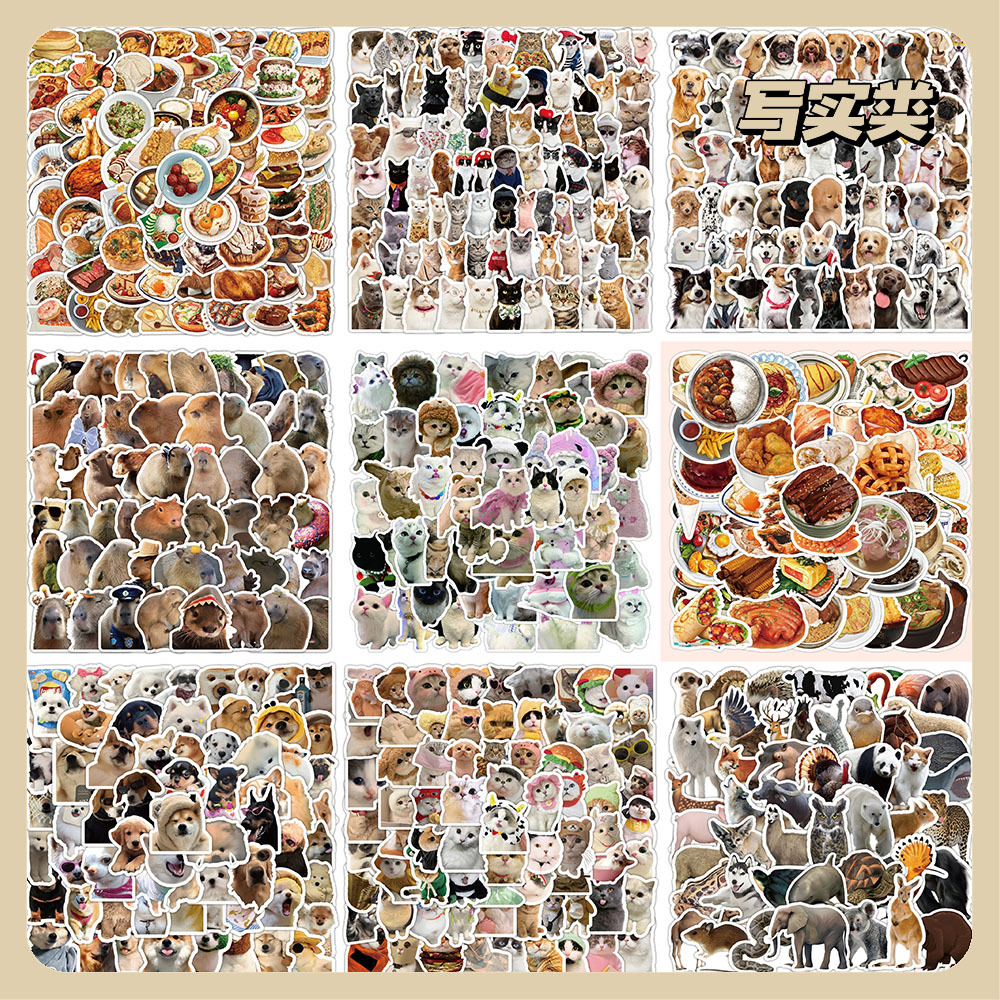 100 현실적인 동물 스티커 작은 동물 음식 낙서 스티커 노트북 스케이트 보드 수하물 방수 도매