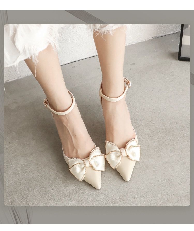 스틸레토 힐 할로우 요정 신발 2024 여름 새로운 틈새 디자인 센스 보우 싱글 버클 하이힐 신발 여성스토어 가기
