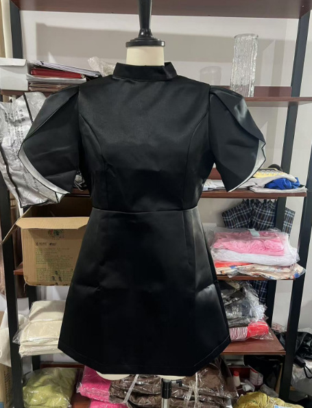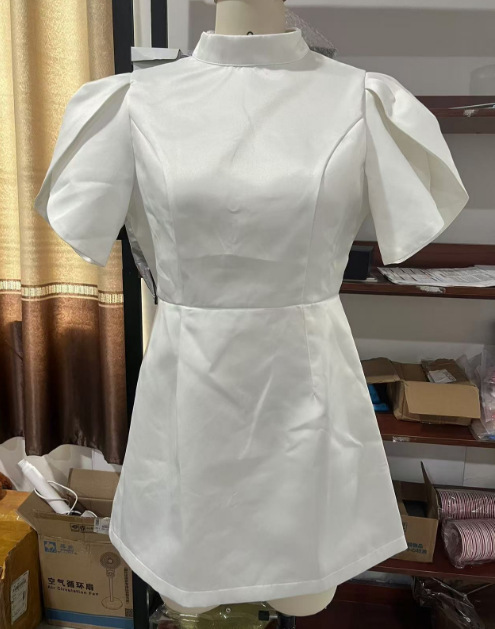 재고 실제 샷-국경 간 AliExpress 폭발 기질 세미 하이 칼라 백 중공 원피스 스커트 활 장식스토어 가기