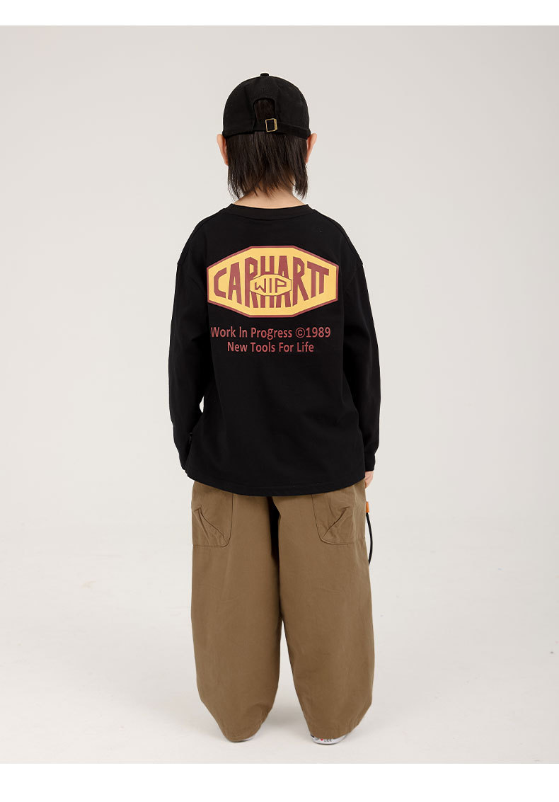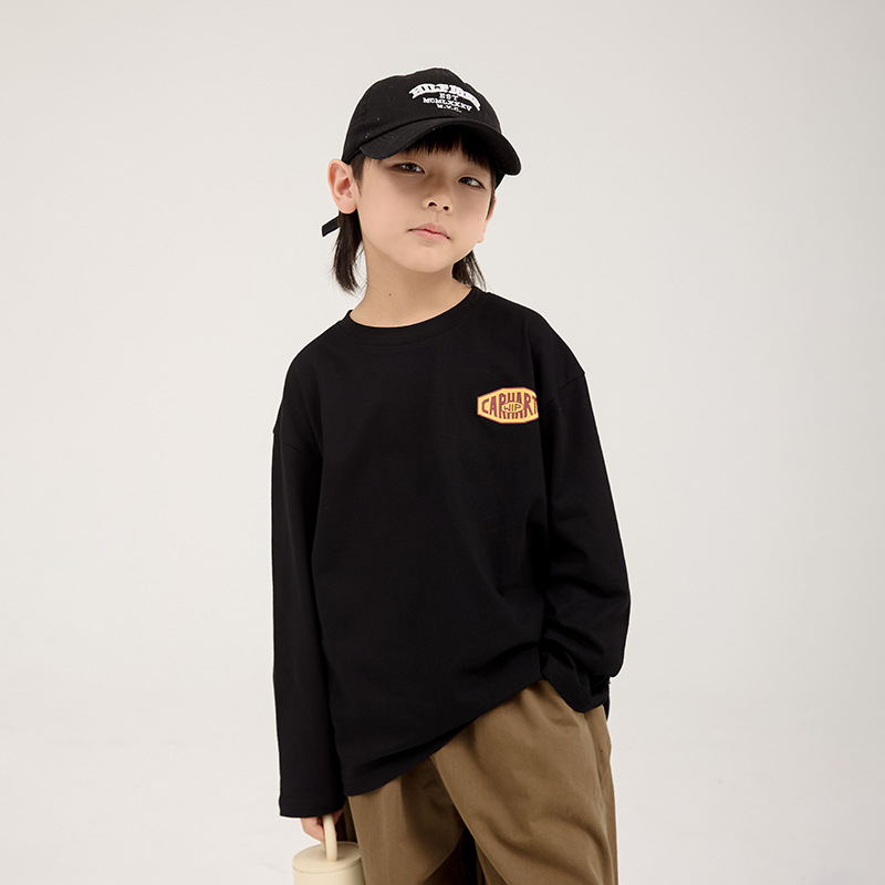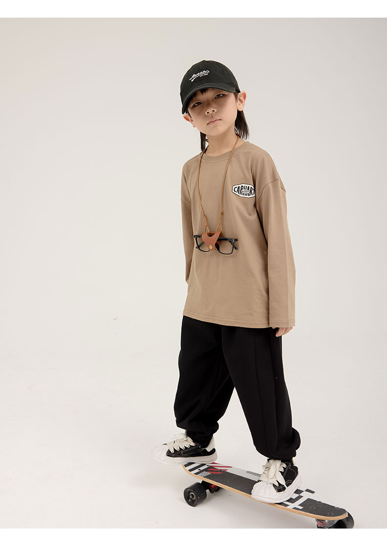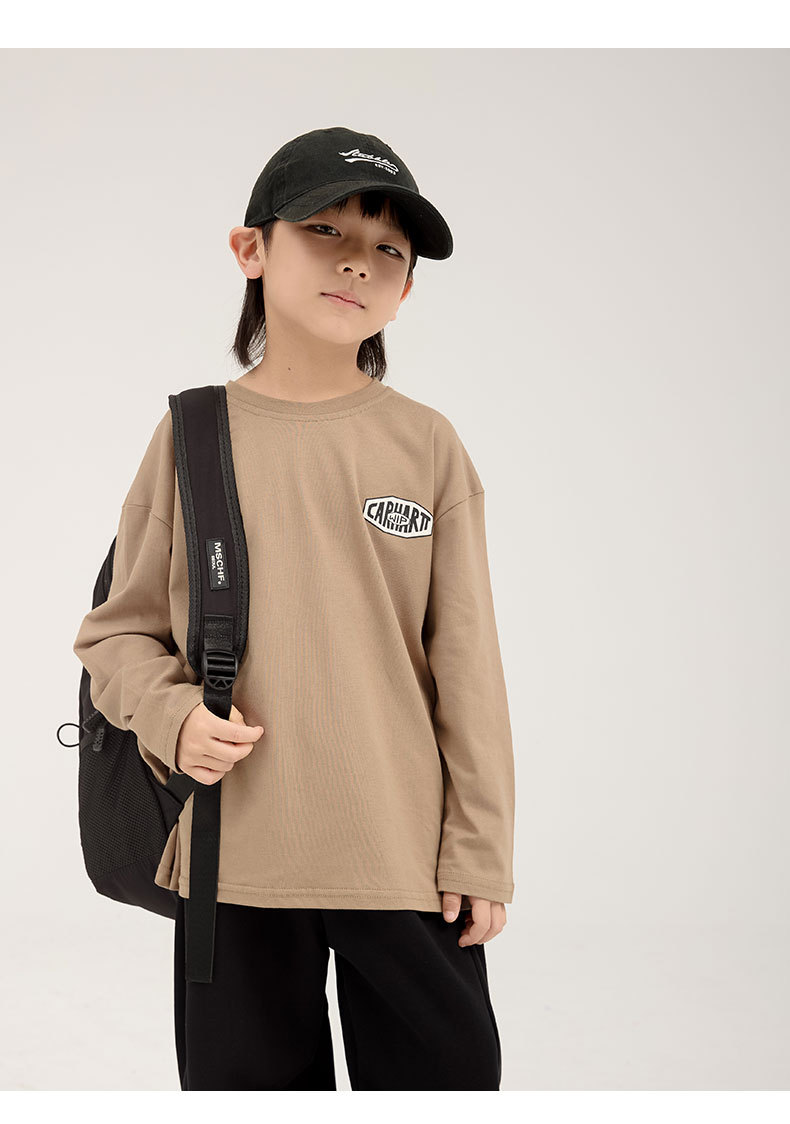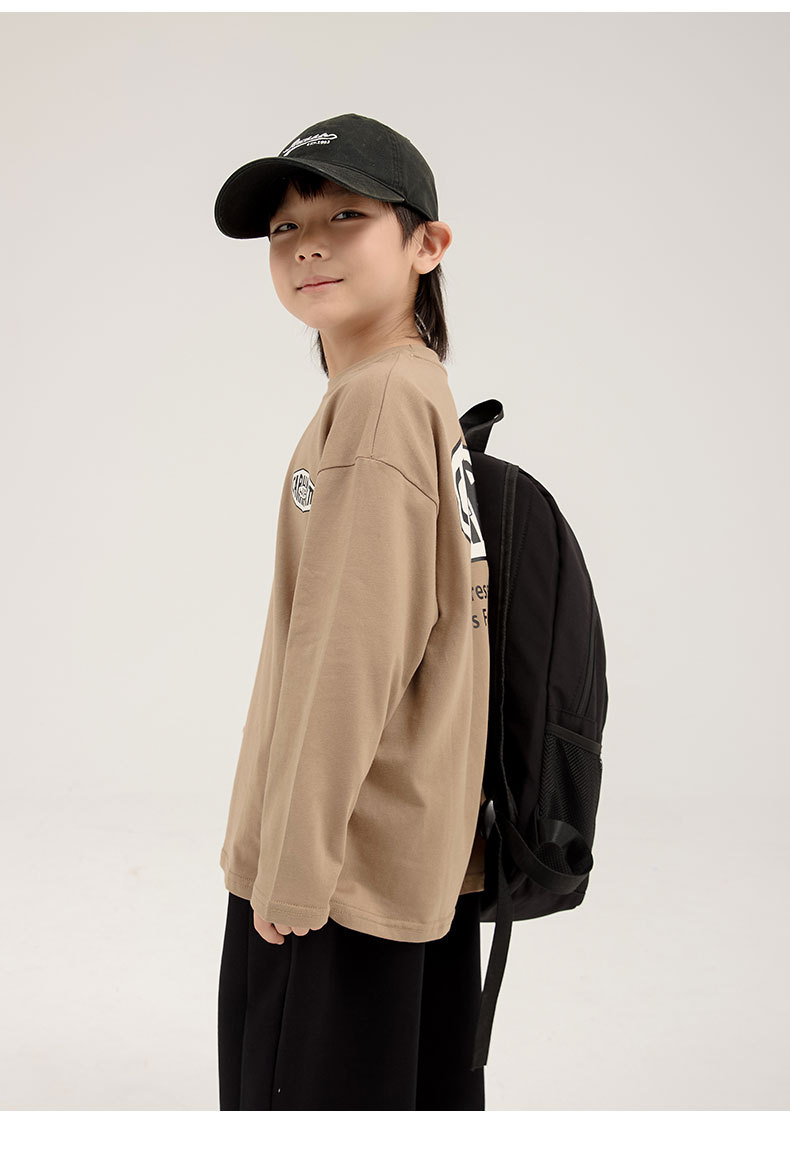소년의 긴팔 2024 새로운 어린이 캐주얼 편지 인쇄 탑 봄과 가을 남자의 느슨한 크루 넥 티셔츠 트렌디스토어 가기
