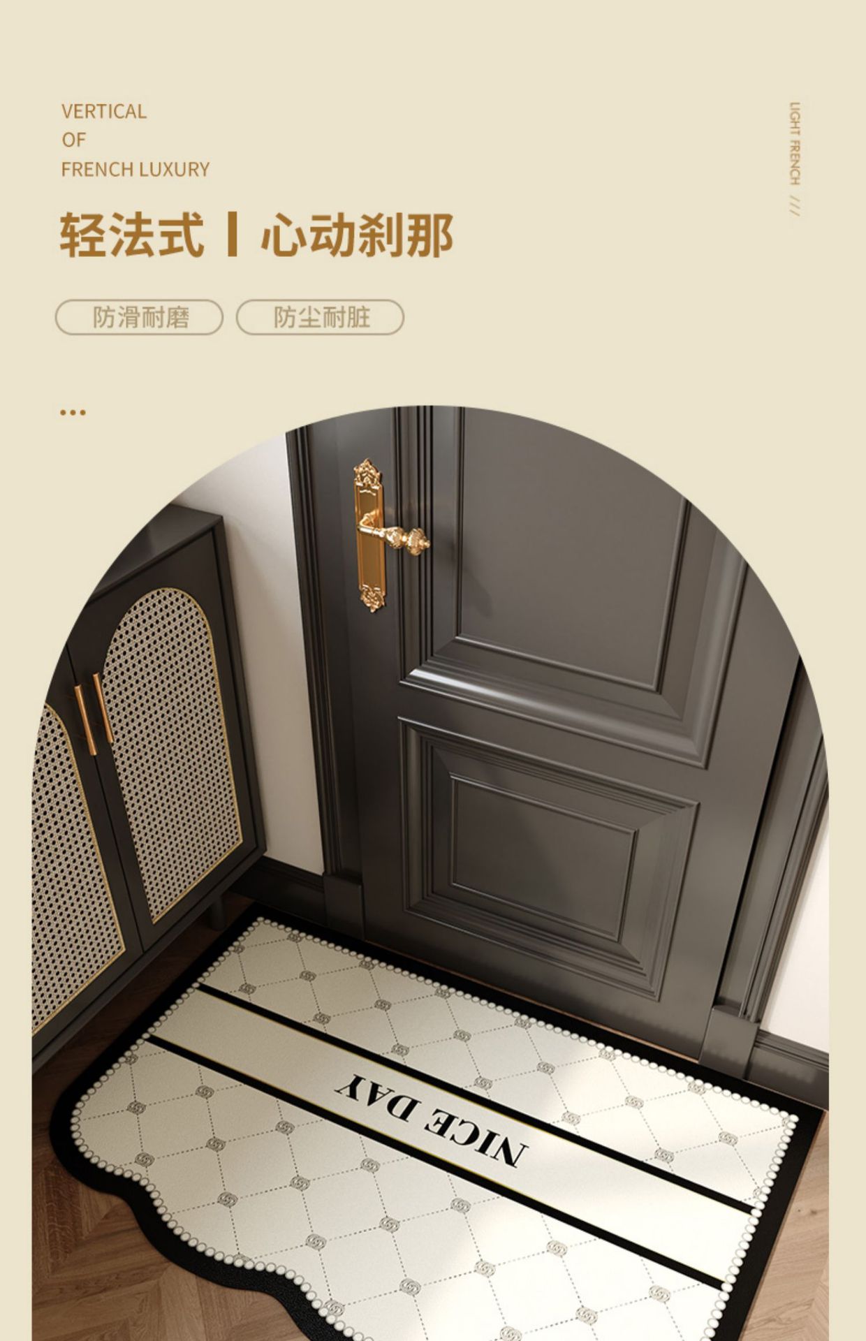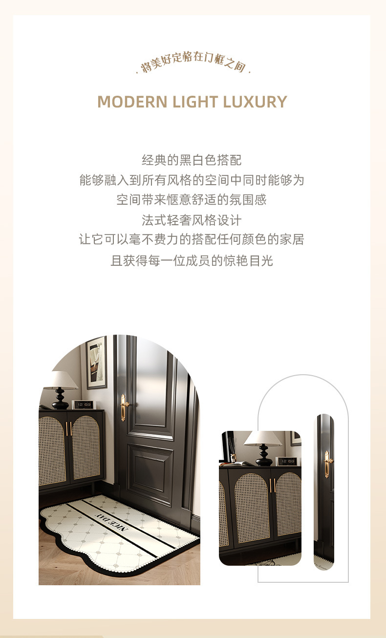 프렌치 스타일 홈 매트 2024 새로운 PVC 지울 수 있고 워시없는 카펫 도어 매트 먼지 방지 및 사용하기 쉬운 발 매트