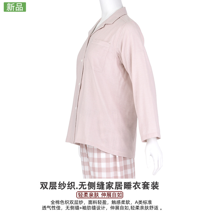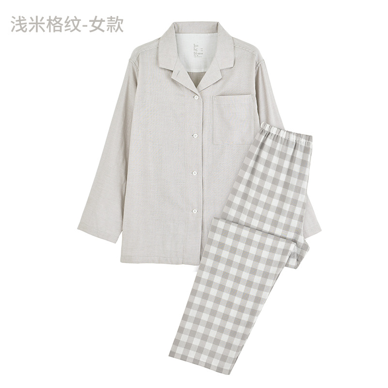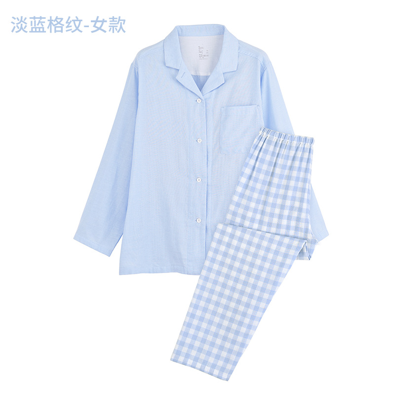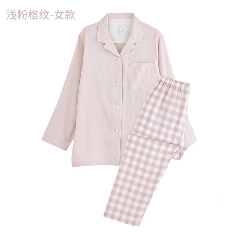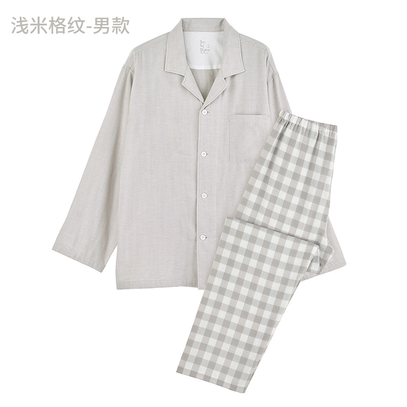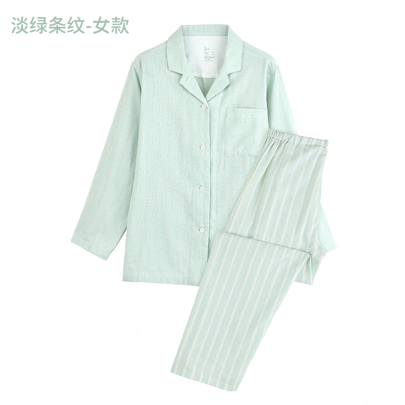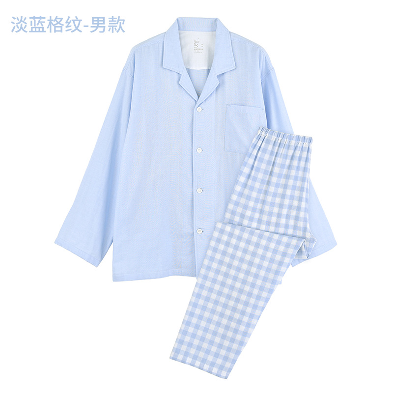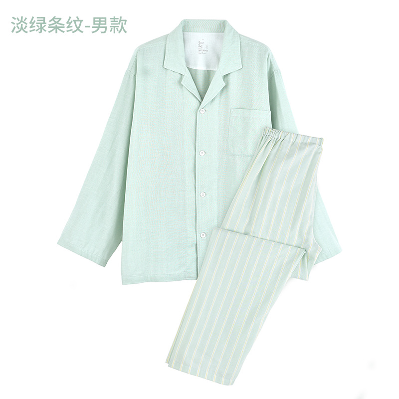 일본식 비 인쇄 스타일 더블 레이어 원사 남성과 여성의 홈 의류 봄과 가을 커플 홈 의류 순수 면 논 사이드 솔기 얇은 세트