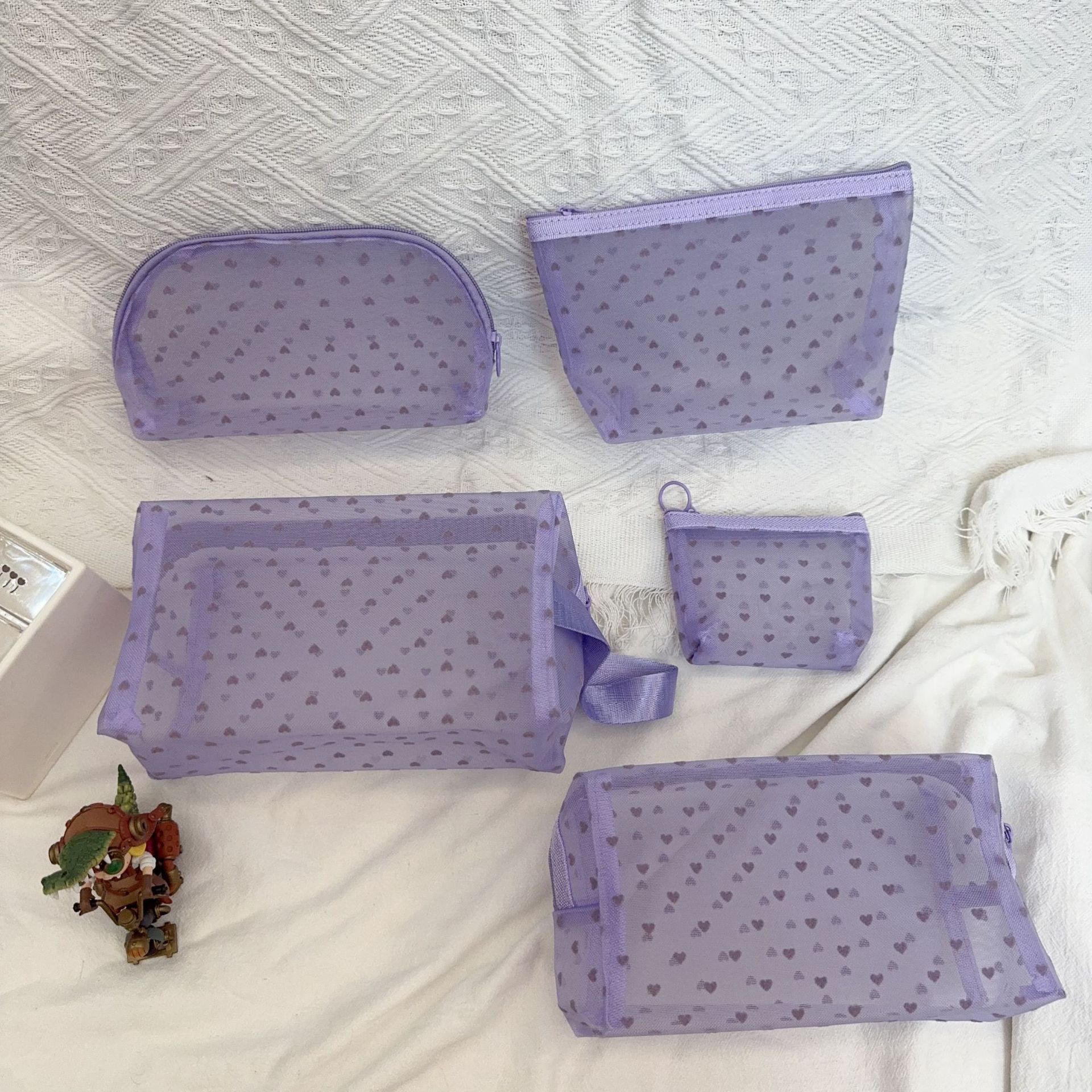 휴대용 5종 세트 메쉬 하트 화장품 가방 대용량 전문 휴대용 세면도구 다기능 립스틱 보관 가방